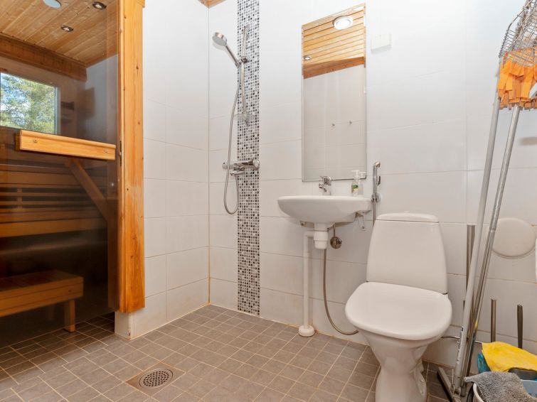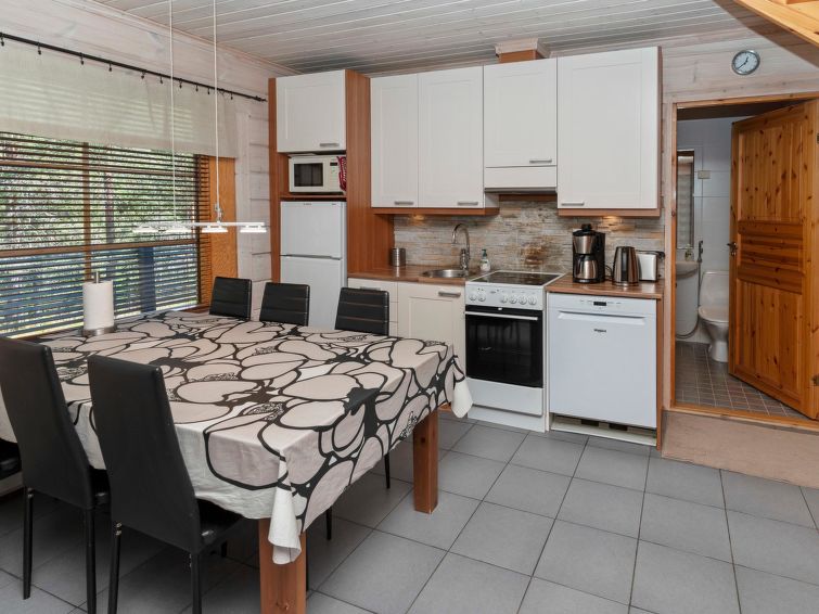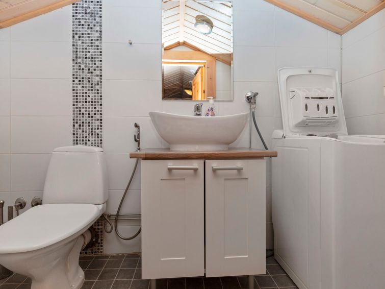 Downstairs 62 m², kitchen/living room, sauna and shower, 2 bedrooms, loft 20 m², 2 toilettes (in bathroom and separate), 2 TVs (upstairs and downstairs), game consol Nintendo-Wii and dvd.