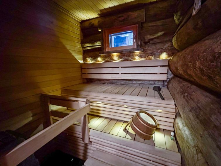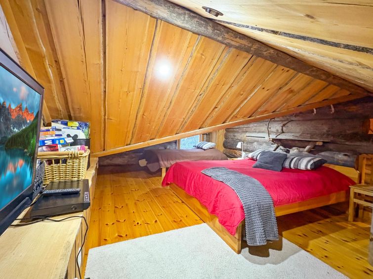 29 km to the north from Kuusamo, Ruka village (West-Ruka) 2,3 km. Kelo log -built row house, built in 2008, bedroom: double bed, loft: 4 beds, living room/kitchen, electric sauna. More information: Final cleaning is included in the price. Pet fee 50 €/pet. The freezer is located on the terrace backyard. Storage facilities in the basement, access via backyard terrace.