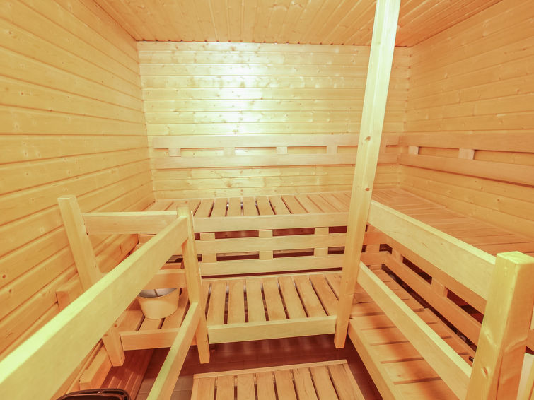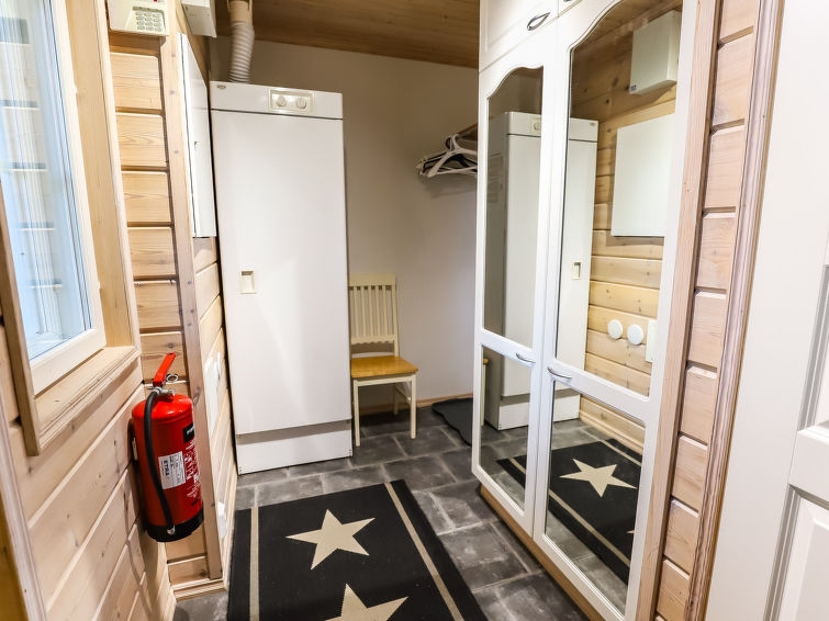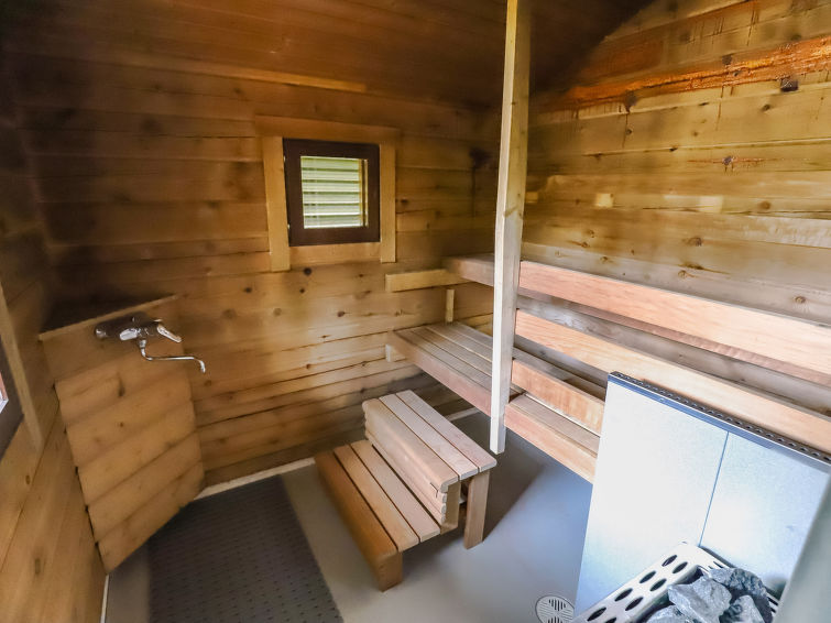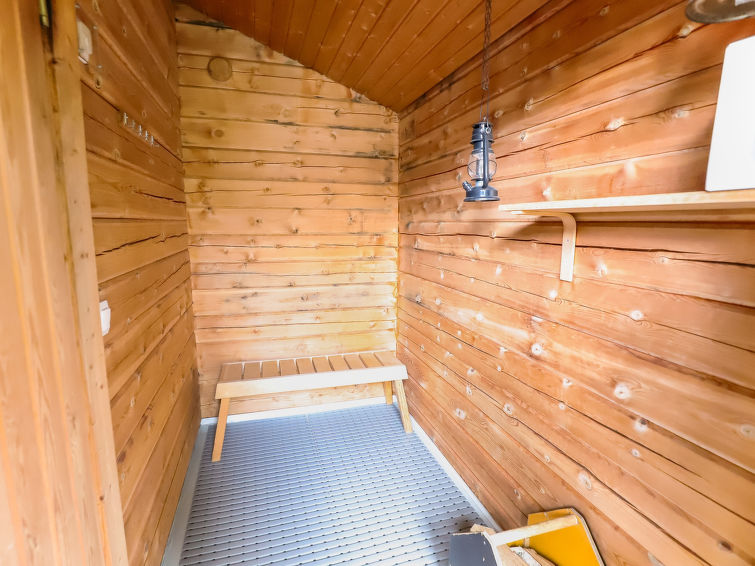 Combined kitchen/living room, electronic sauna, carport, woodshed and lockable storage room (for example for skis). There is also a wood-heated yard sauna.