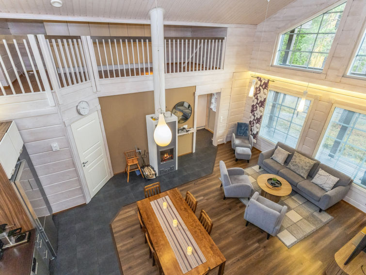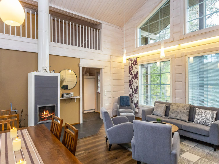 25 km north from Kuusamo, Ruka village (Western Ruka) 2.2 km. Semidetached log house, built in 2013, bedroom 1: 2 beds, bedroom 2: 2 beds, loft: 4 beds , combined kitchen/livingroom, electric sauna. New cottage area between Ruka fell and highway nr 5. Nearest ski lift; Kelo, nearest restaurant Royal Ruka.