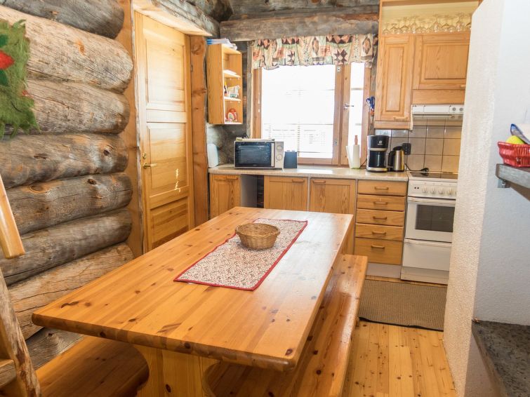 Apartment in a kelo-log built semi-detached house, located near Juhannuskallio district. Outdoor routes and services of Ruka tourist center are easily accessible.