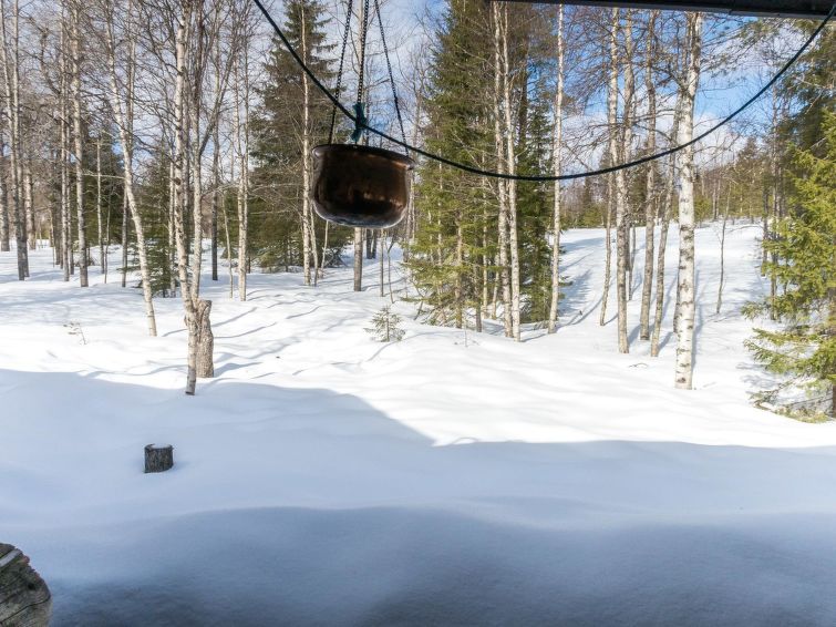 27 km to the north from Kuusamo, Ruka village (West-Ruka) 2,5 km. Apartment in a semi-detached kelo log-built house, built in 1991. Bedrooms 1-2: double bed, bedroom 3: 2 bunk beds. Two low lofts with steep stairs. These lofts are not suitable for overnight stays. Kitchen, electric sauna. Other distances: Oulanka National Park/Karhunkierros trail 24 km, Riisitunturi 30 km.