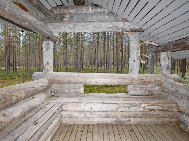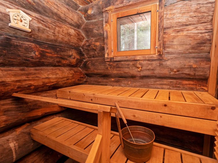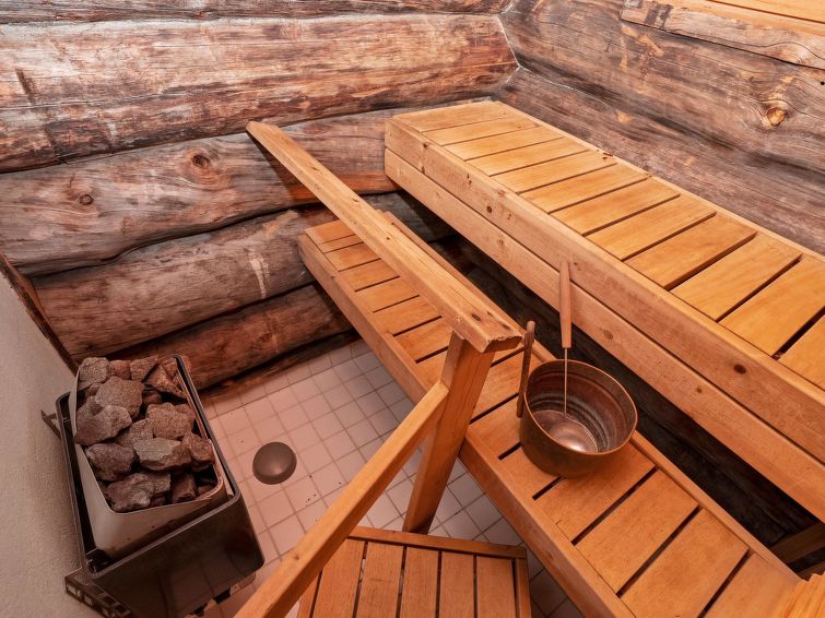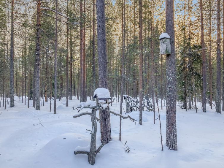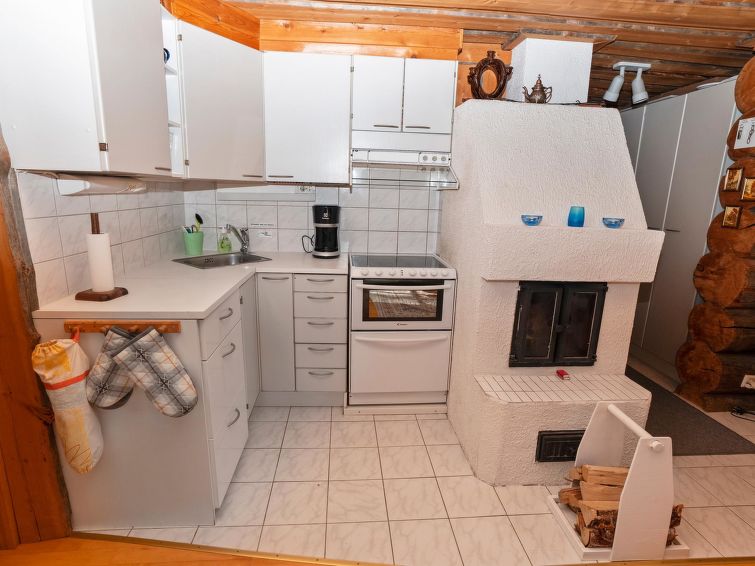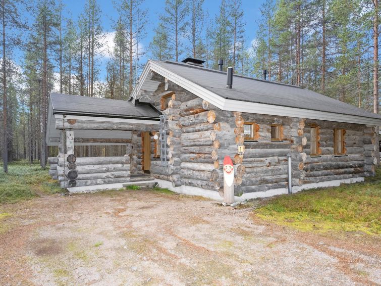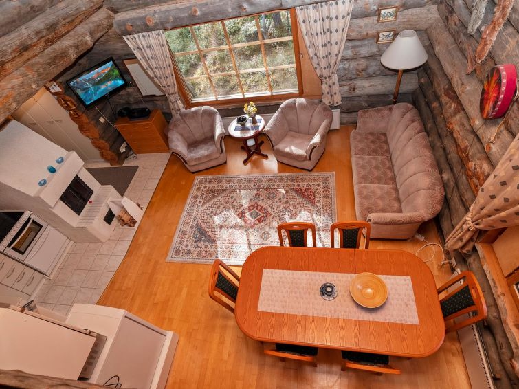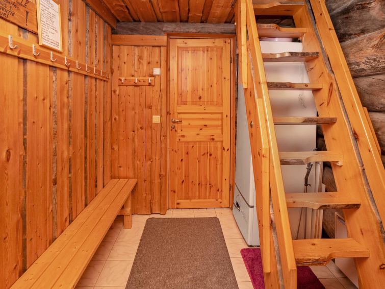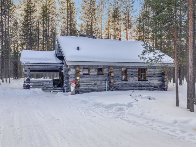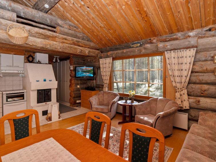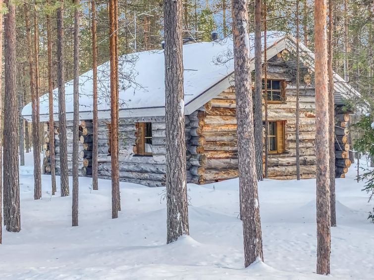 Ca. 32 km to the north from Kuusamo. Log cabin built in 1991, kitchen+living room, bedroom with two beds, small bed room with bunk bed, loft (height 170 cm) with four mattresses, dressing room, shower room, sauna (electric stove), terrace. Downstairs 61,5 m² + loft 10 m². Distance to Ruka Resort 9 km, Kuusamo town services 32 km away. Cottage is located close by Ruka ski trails, and ca. 100 m to snowmobile routes.