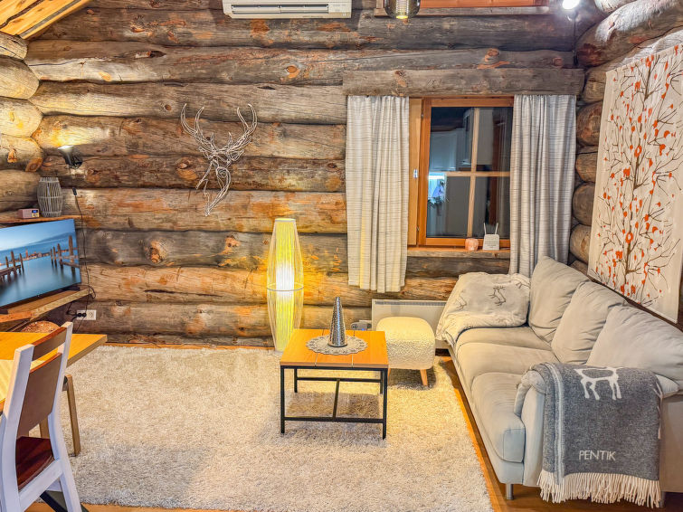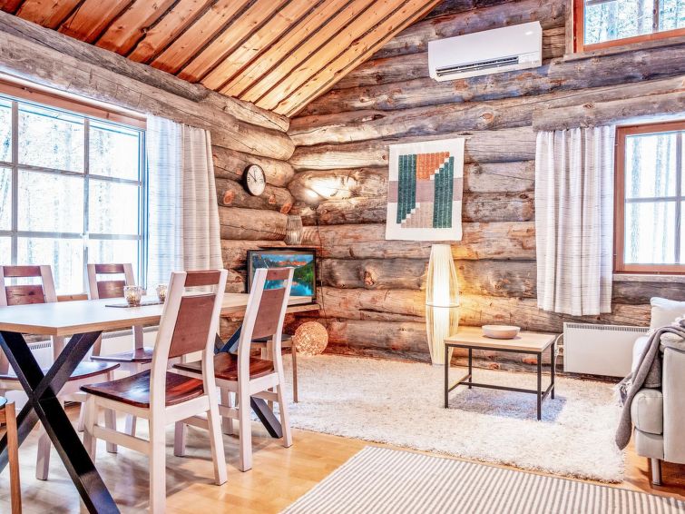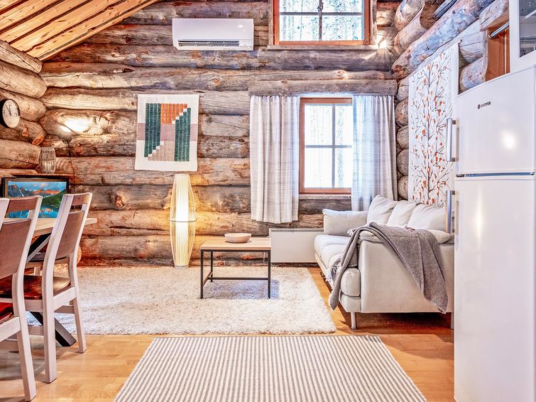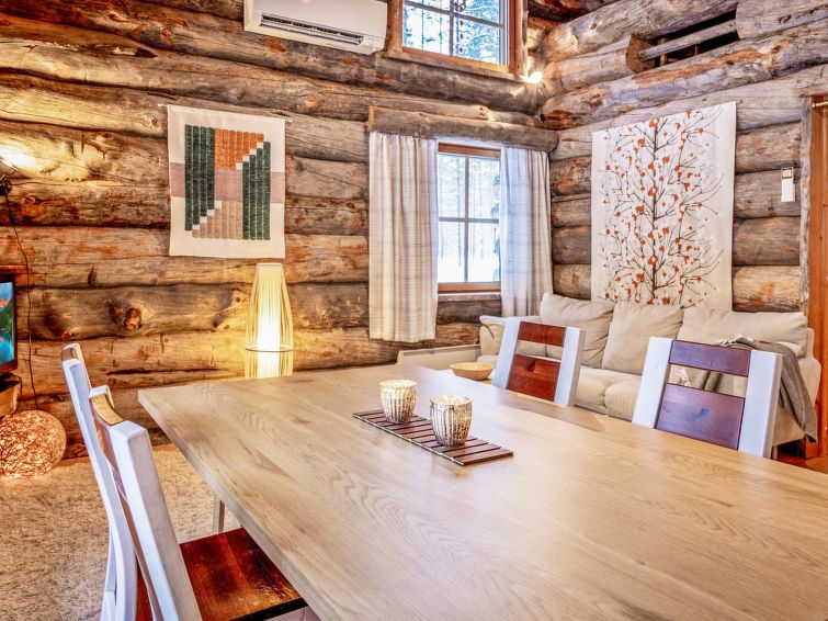Our cabin's location is ideal for families and groups who want to enjoy the tranquility and beauty of nature. Furthermore, we provide a kitchen/living room where you can prepare delicious meals together, and a relaxing electric sauna for unwinding after a day of adventures. The atmospheric large log-built cooking hut in the cabin's yard completes the perfect holiday experience.