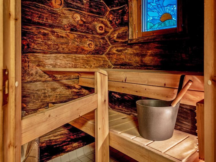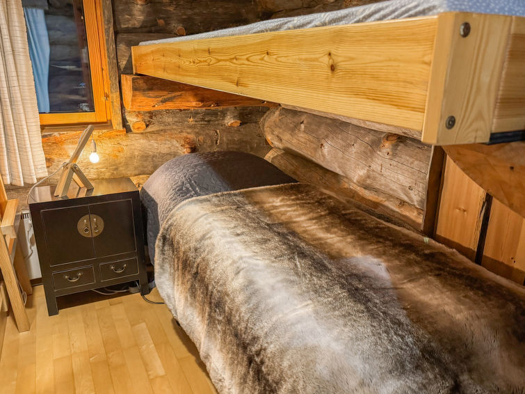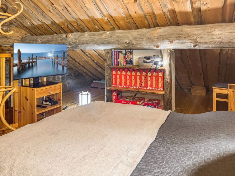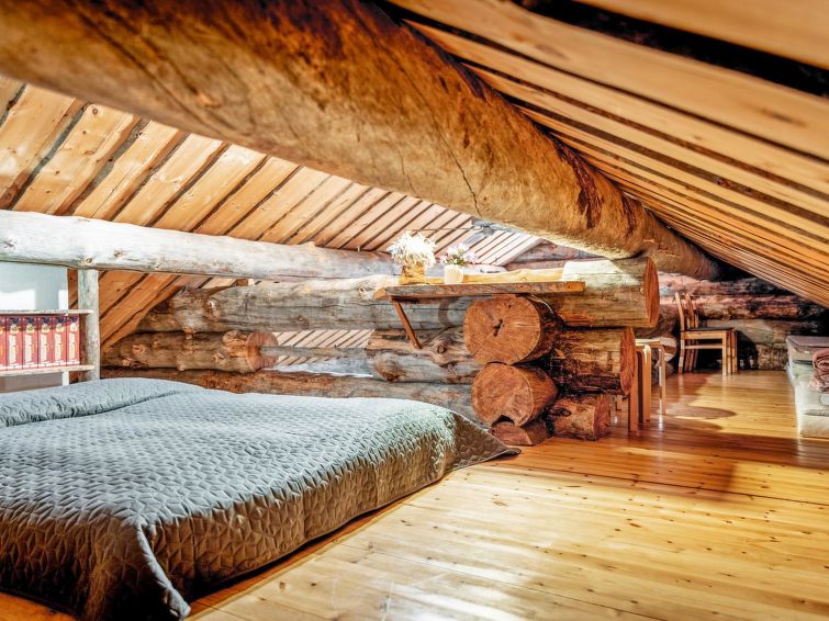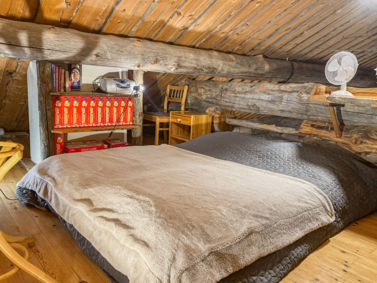 Rent a charming kelo log cabin in a peaceful kelo log cabin area surrounded by nature! Built in 1991, this cabin provides a warm and comfortable atmosphere for relaxation and enjoyment of the outdoors. The cabin features two comfortable bedrooms: one with two separate beds and the other with a lower bed and a conveniently foldable upper bed, especially suitable for children and young ones. For added comfort, the cabin includes a loft with additional mattresses for sleeping.