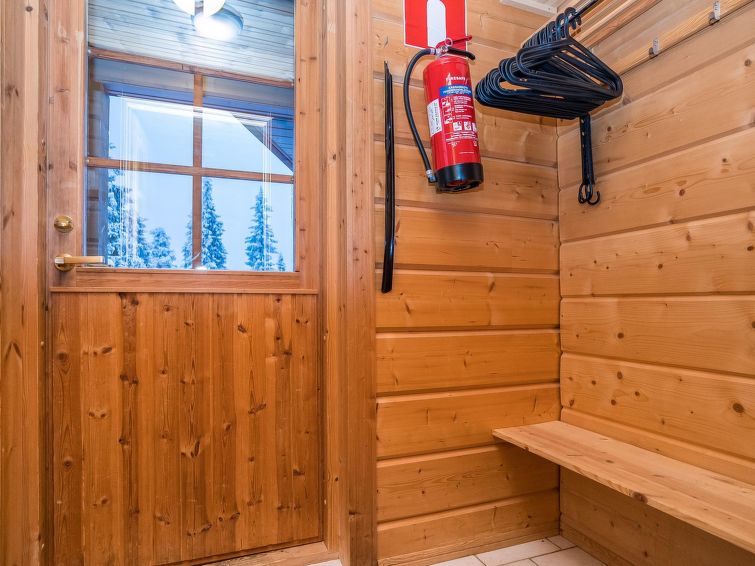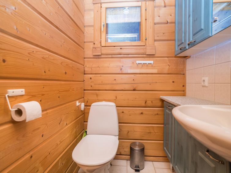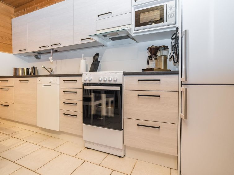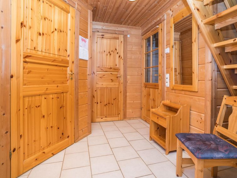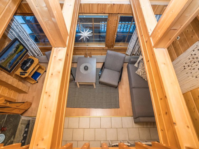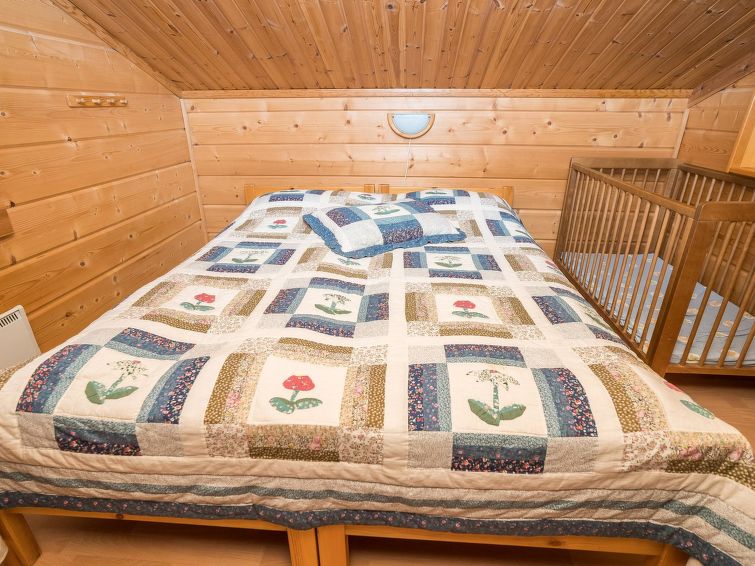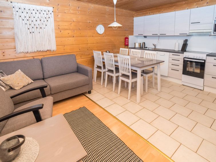 25km north of Kuusamo, Vuosseli (Eastern Ruka) 800m. Apartment in log-built semi-detached house, built in 1999, bedroom: double bed, bedroom2 (loft): 2 beds, loft: convertible sofa for two + 2 beds, combined kitchen/living room. Area 52 m² + loft 26 m², highest point 190 cm.