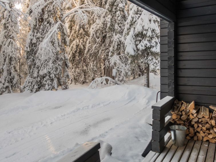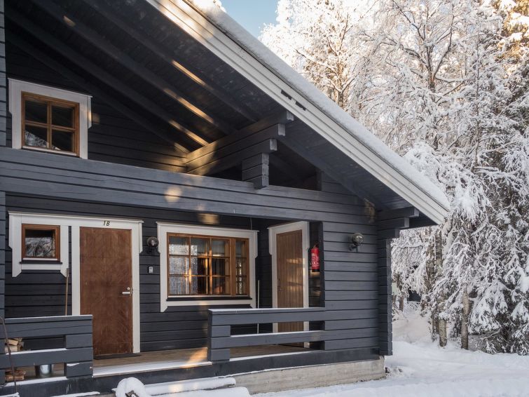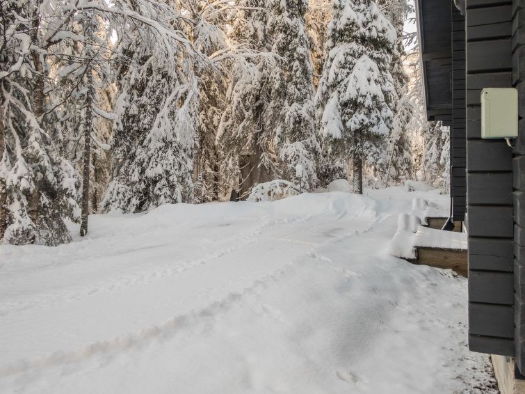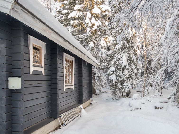 27km north of Kuusamo, Eastern Ruka 3 km, Lake Vuosselijärvi 200m. Log apartment in the semi-detached cottage, built in 1990, bedroom 1: double bed, loft (8 m², sloping ceilings, steep stairs): 1 bed, 2 mattresses, combined kitchen/living room, electric sauna. Semi-detached house situated near Lake Vuosselijärvi. Pets allowed at extra fee.