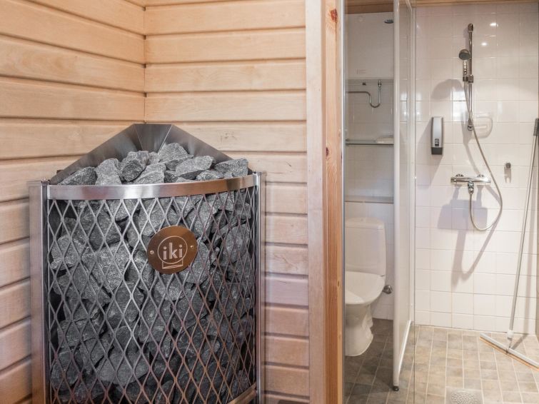 Apartment located nearby Ruka International Ski Stadium by the lake Talvijärvi. The nearest ski lift - Talvijärvi, the nearest restaurant - Rukatonttu. Ski trails, snowmobile trails, and other activities are located right next to the apartment. 26 km to the north from Kuusamo, distance to the Ruka village (West-Ruka) is 1,4 km car, and 600 m by foot. Holiday apartment, built in 2008, on the ground floor of 2-storey loft house by the lake Talvijärvi. Bedrooms 1-2: 2 beds, living area: sofa bed, living room/kitchen, electric sauna. More information: There is a water-circulated floor heating in the apartment. Guests can use shared laundering/drying area located in the basement of the house. In the basement, there is also a shared ski maintenance room. Swimming possibility on the lake Talvijärvi beach, also ice swimming possibility in the winter. Bed linen and final cleaning are included in the price.