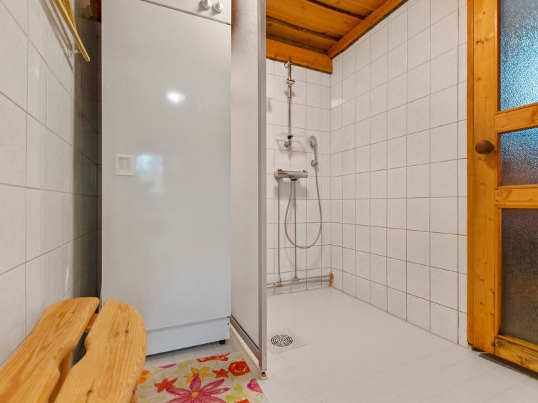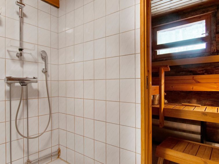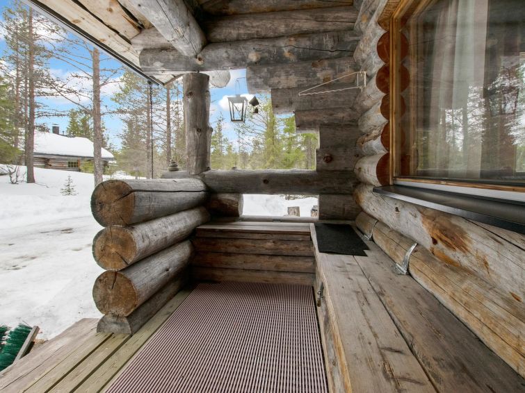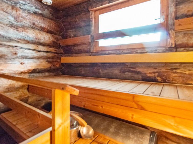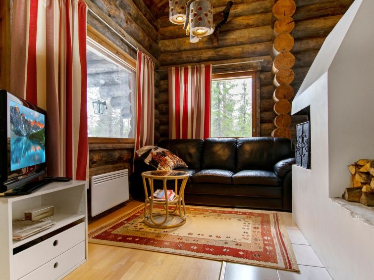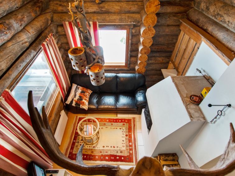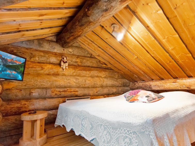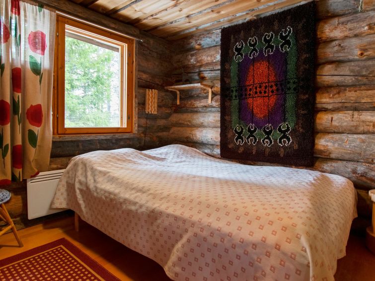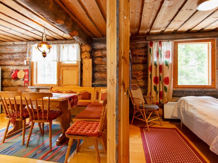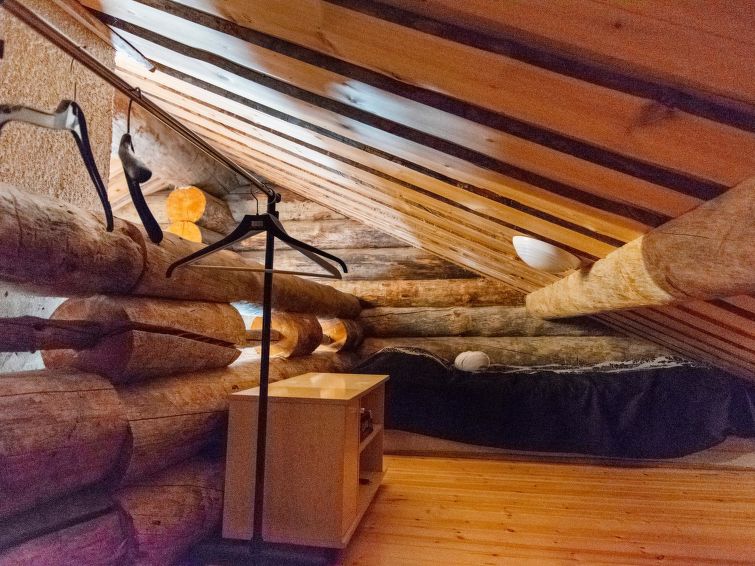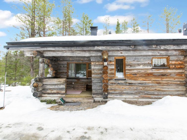 24 km north of Kuusamo, Ruka 4 km, Veskanen 50 m. Apartment in kelolog-built semi-detached house, built in 1989, bedroom: double bed, loft (10 m²): 2 beds and 2 mattresses (steep stairs to the loft, highest point 2 m), combined kitchen/living room, electric sauna. Comfortable semi-detached kelo-loghouse apartment near Rukatunturi.