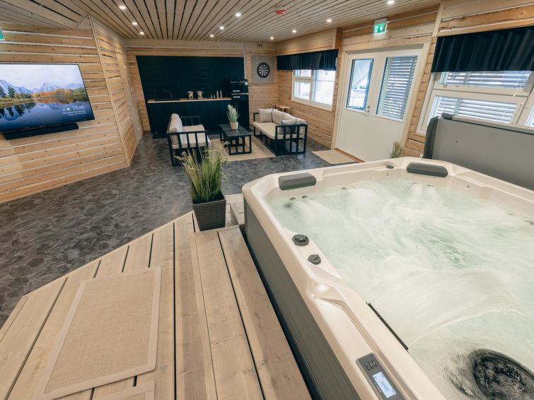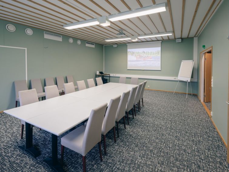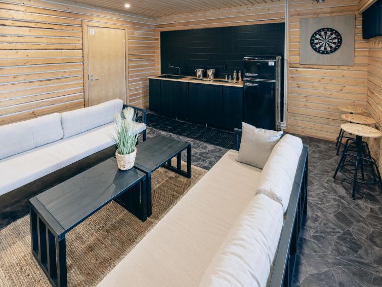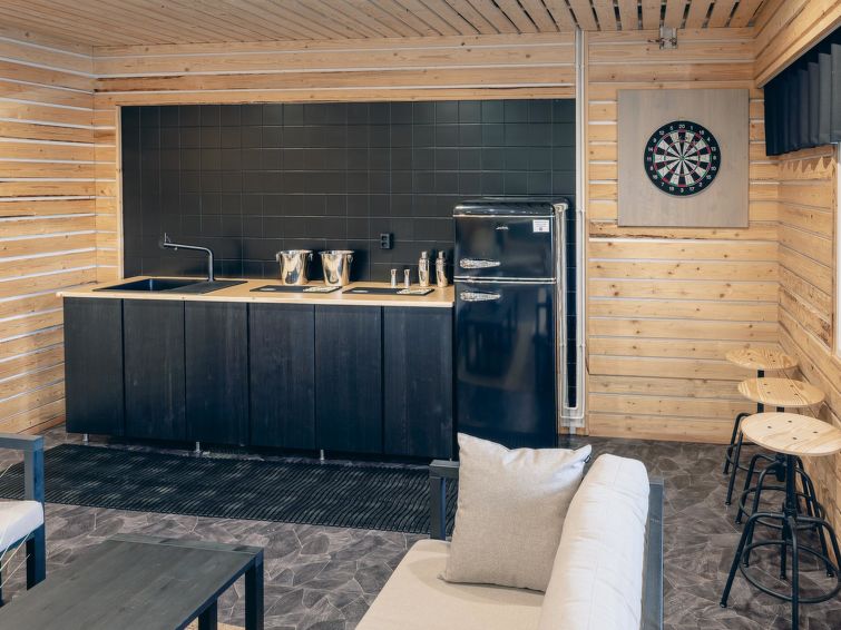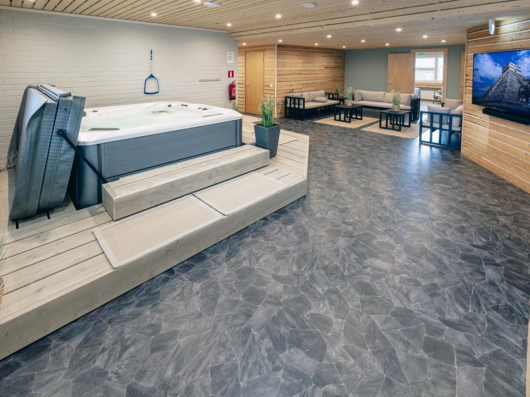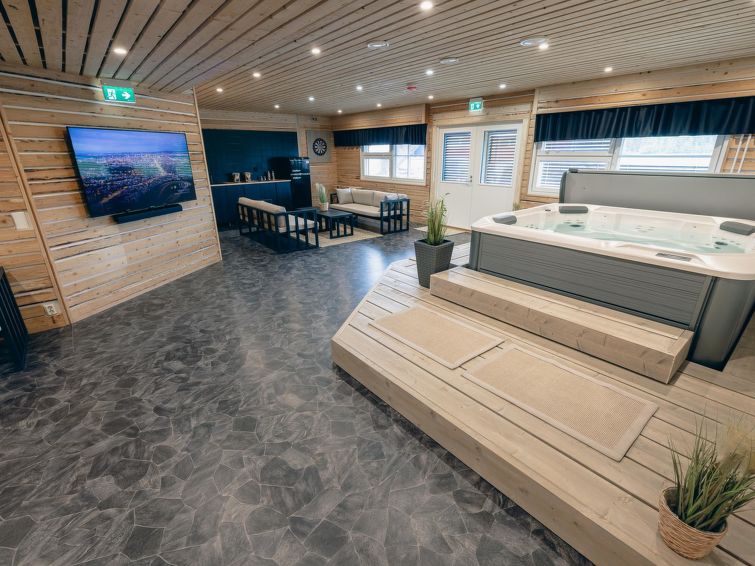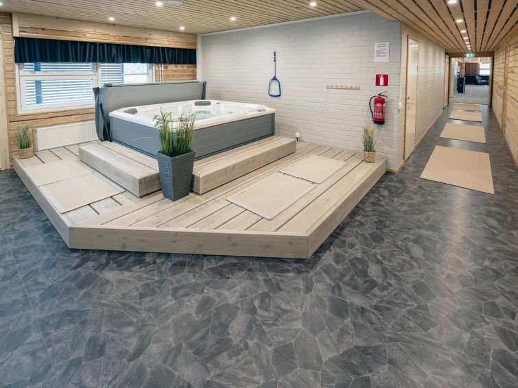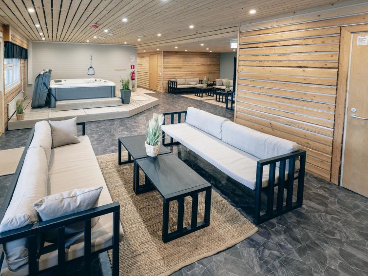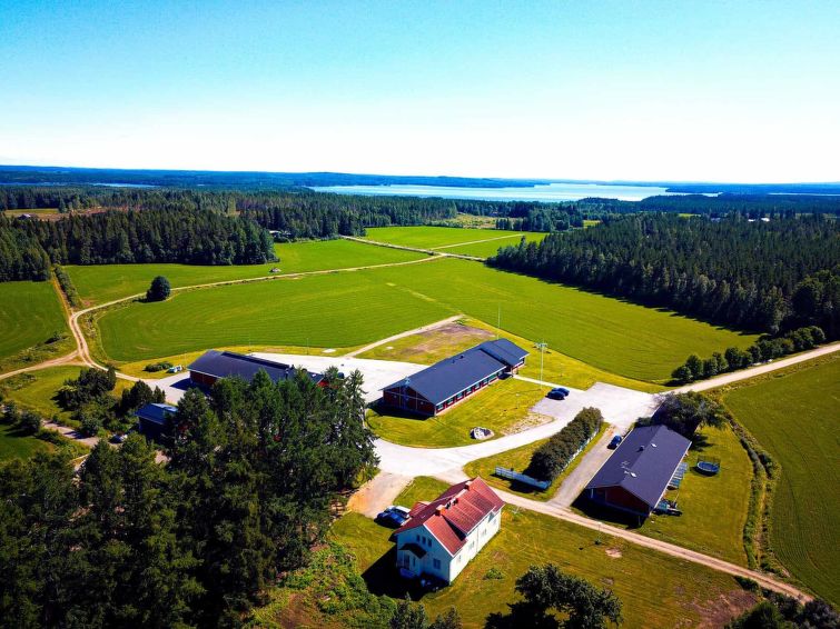 The facilities include 6 bedrooms in the same building, all of which have separate beds for 2, and in addition, 3 bedrooms also have bunk beds x 1 per bedroom. Modern meeting room, party room with benches and tables and tableware for up to 100 people. Kitchen with good cold storage facilities, sofa group / living room, 5 x toilets, sauna (with electric stove), showers x 2, jacuzzi with sauna section, laundry room, hallway with hand shower.