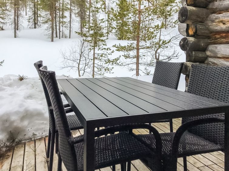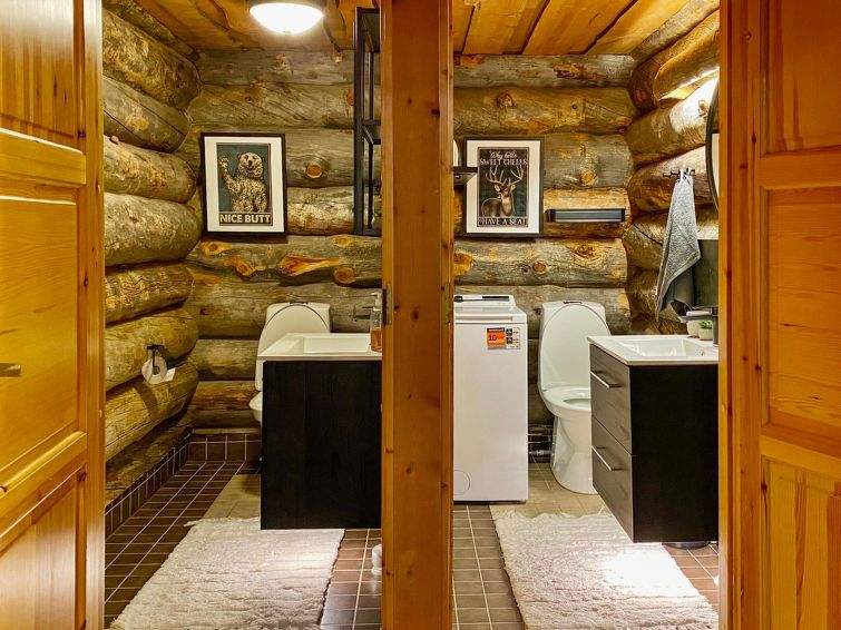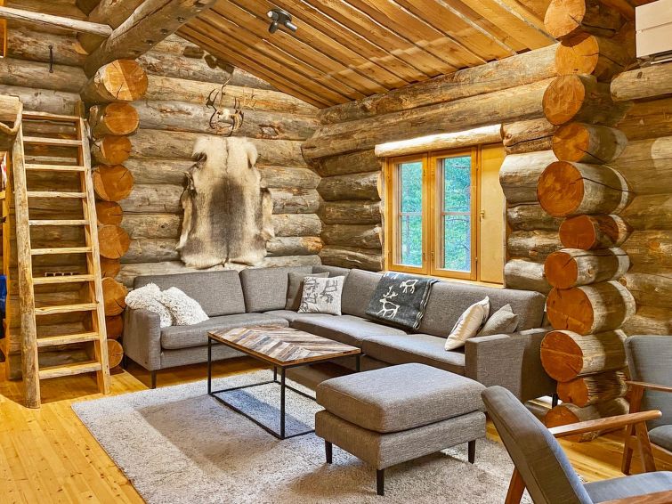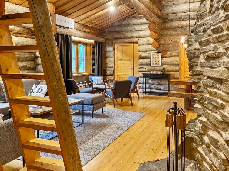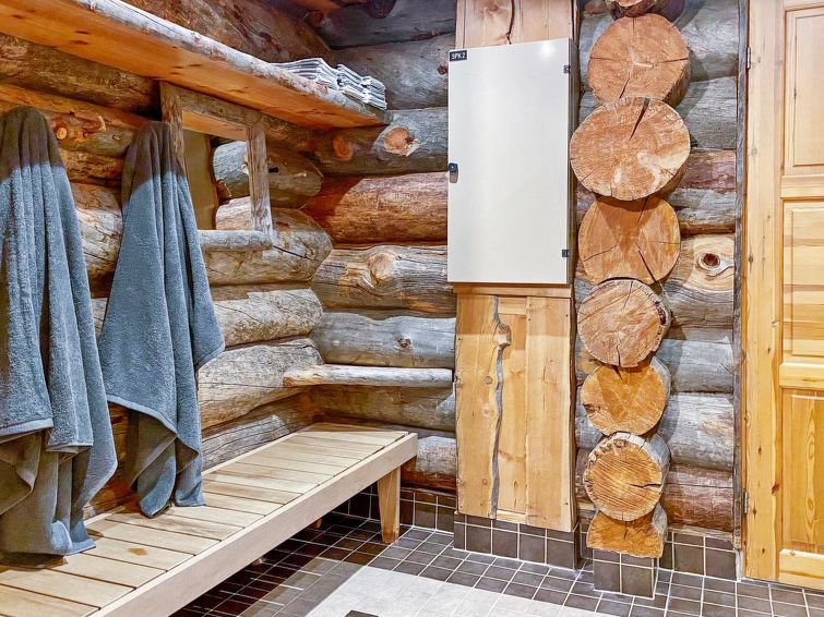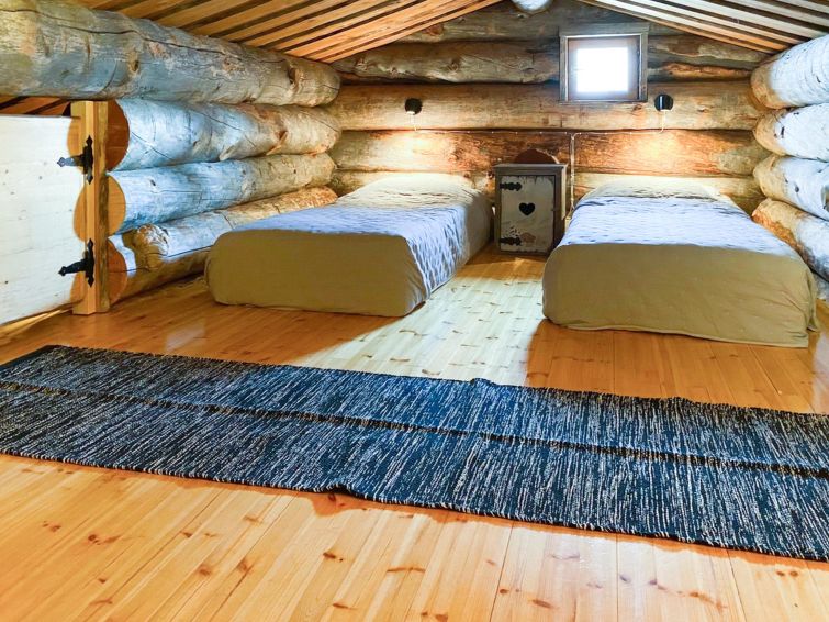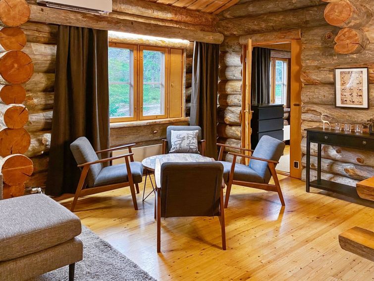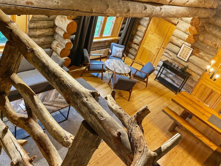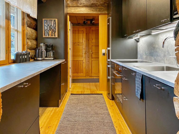 27 km to the north from Kuusamo, Ruka village (West-Ruka) 2.5 km. Log house apartment built in 1987, refurnished in spring 2021, bedroom 1-2: double bed, bedroom 3: 2 bunk beds. A shallow loft with steep stairs: 2 beds. Fully equipped Kitchen including filter coffee and "Dolce Gusto " capsule machine. Electric sauna, 2 showers. Rear terrace with table and chairs.
