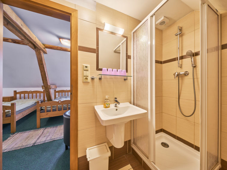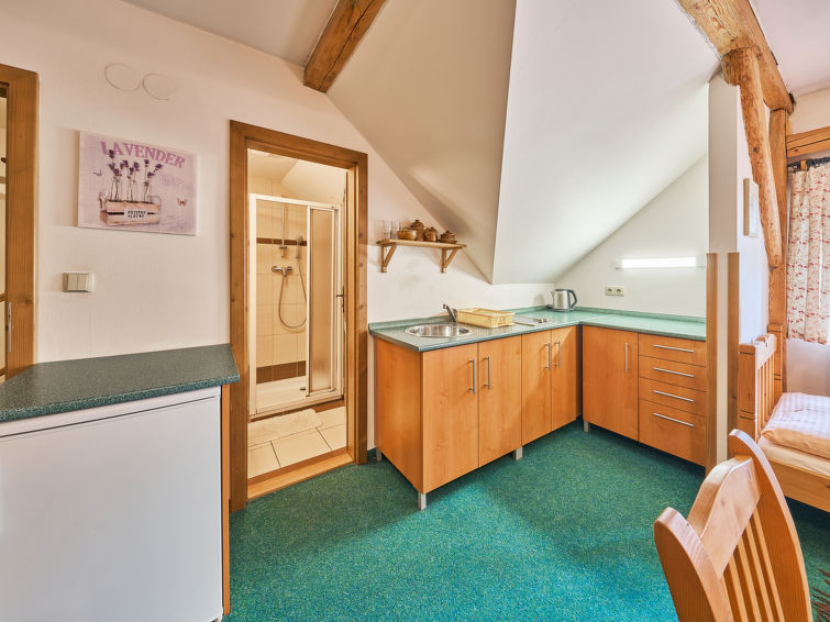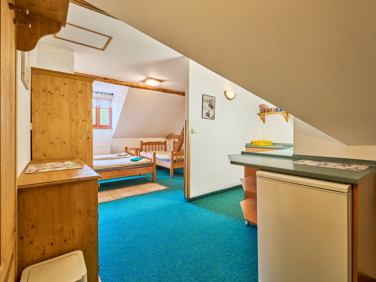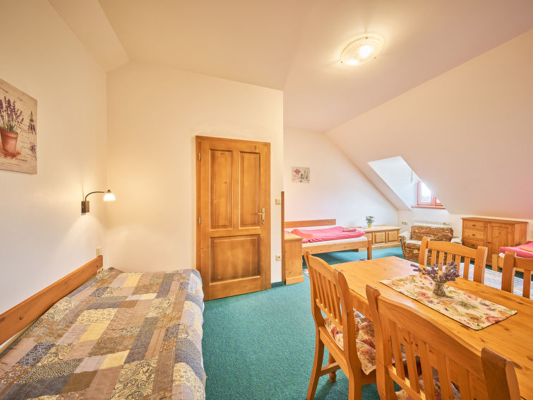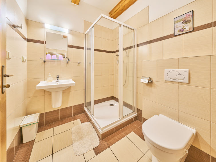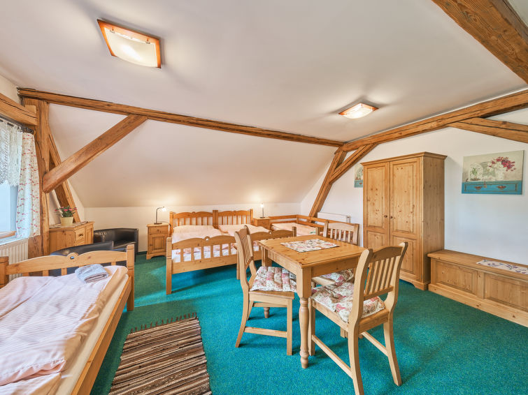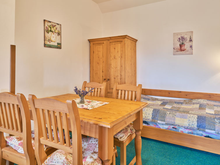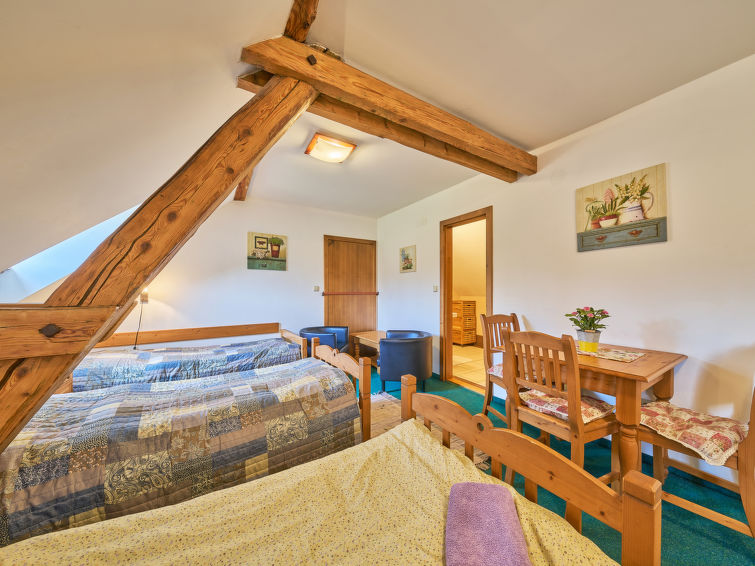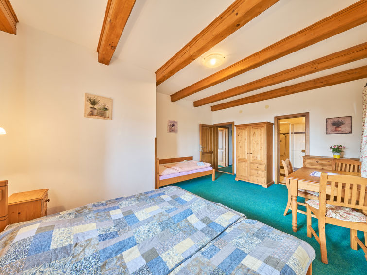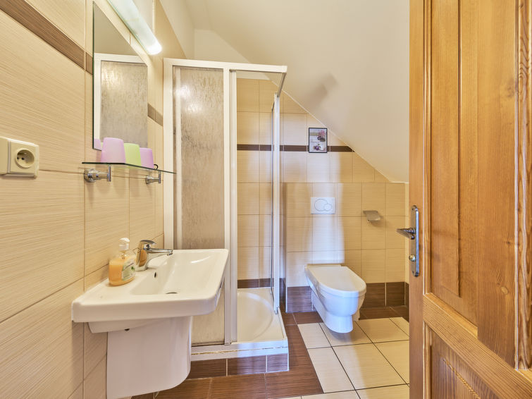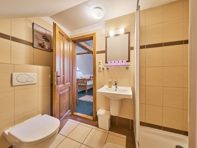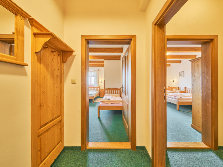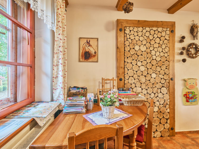 8 rom hus 330 m2 på 2 etasjer. Lys, stilfullt og træ møblement møbler: 1 rom med 1 seng, 1 dobbeltseng og dusj/WC. 1 rom med 2 senger, 1 dobbeltseng og dusj/WC. Kjøkken/stue (4 kokeplater, stekeovn, oppvaskmaskin, brødrister, vannkoker, mikrobølgeovn, frys, elektrisk kaffemaskin) med, vedovn, spisebord, spisehjørne, satelit-TV, CD-spiller og elektrisk oppvarming. El-oppvarming. Toppetasje: 1 rom med skråtak med 1 seng, 1 dobbeltseng og dusj/WC. 1 rom med skråtak med 1 seng, 1 dobbeltseng og dusj/WC. 1 rom med skråtak med 1 seng, 1 dobbeltseng, kjøkkenhjørne og dusj/WC. 1 rom med skråtak med 4 senger og dusj/WC. 1 rom med skråtak med 2 senger, 1 dobbeltseng, kjøkkenhjørne og dusj/WC. Terrasse. Terrassemøbler, grill (flyttbar). Hærlig panoramautsikt av dalen. Fasiliteter: høy barnestol barneseng (ekstra). Internett (trådløs LAN [WLAN], gratis). Vennligst merk: velegnet for familier. Røykfritt hus. Kjæledyr/små hunder tillatt 2 kjæledyr/små hunder tillatt.