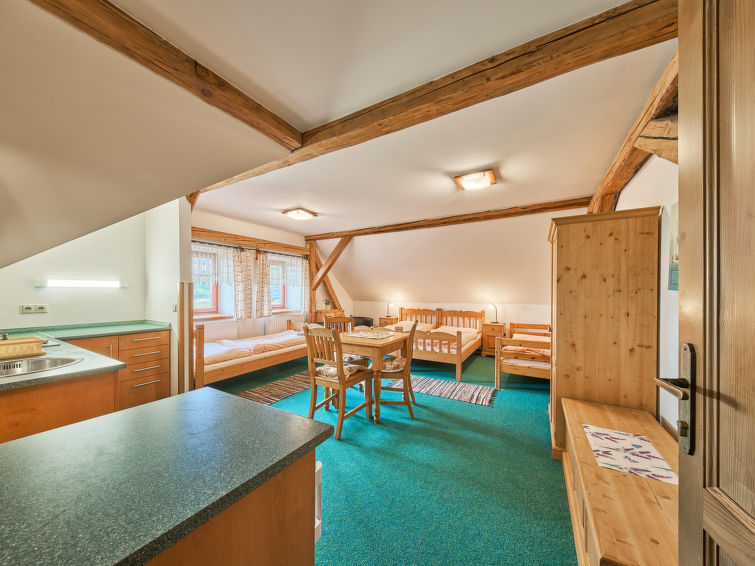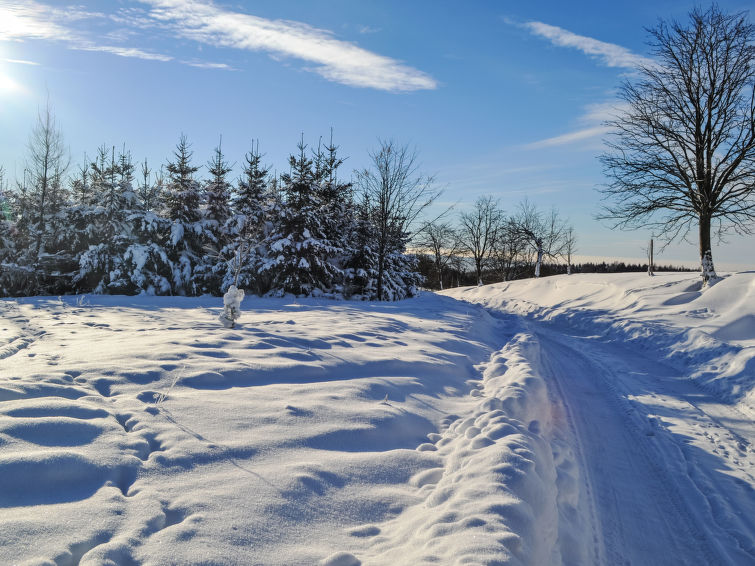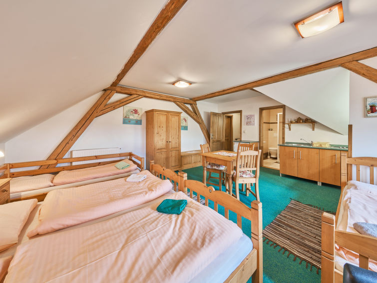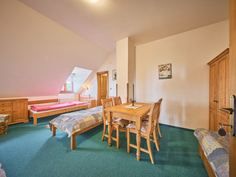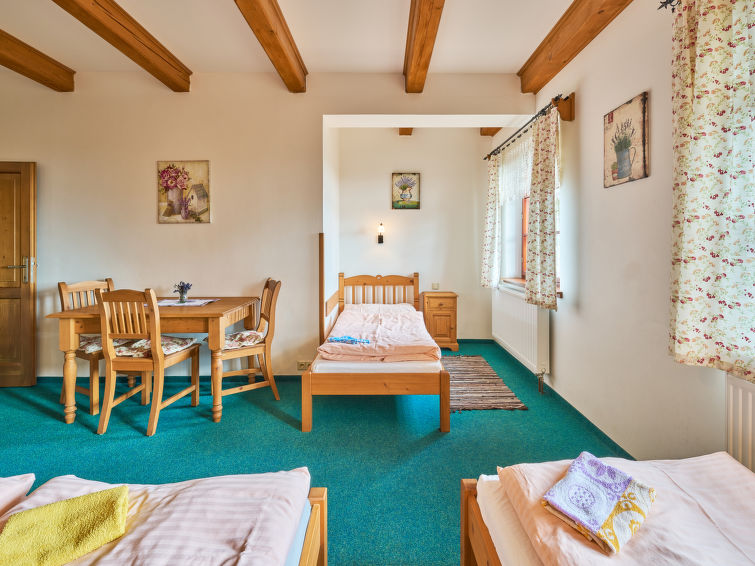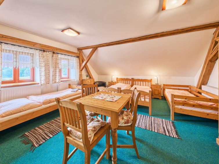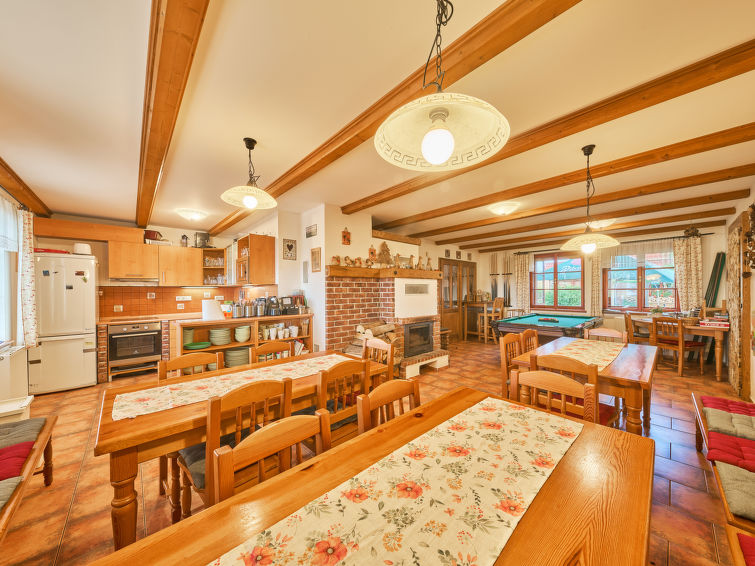 Fin hus på landet "Růžovka (ULJ100)", med 2 etasjer, rekkehus, bygget i 2010. 1.5 km fra sentrum av Uhlejov, 3 km fra sentrum av Miletín, 13 km fra sentrum av Dvůr Králové, i en roligt, høyt posisjon, 10 km fra skiområdet. Fellesbruk: tomt 400 m2, eng. Privat: svømmebasseng (3,6 m i diameter, dybde 90 cm, Sesongåpent: 01.Jun. - 30.Sep.). I huset: biljard. 1.5 km lang Tilgang med bil hele veien til hbrukt (naturvei). Parkering (for 8 biler) på tomten. Butikk 3 km, supermarked 10 km, innendørs pool 10 km. Skiheis 45 km, stolheis 45 km, skibakker 10 km, langrensløype 100 m. Attraksjoner i nærheten: Miletín 3 km, Hořice 10 km, Lázně Bělohrad 10 km, Zoo Dvůr Králové 13 km. Velkjente skiområder: Jánské Lázně 45 km. Vennligst merk: eieren bor på same tomt. Hot Tub (extra).