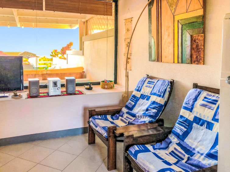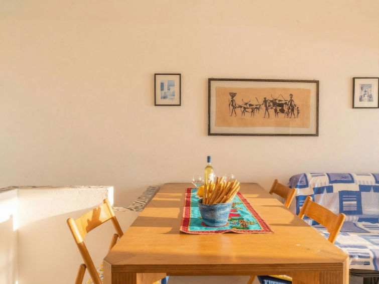 3 rom rekkehus 90 m2. Enkelt og praktiskt møbler: stue/spisestue med, 1 dobbel sovesoffa, satelit-TV og stereoanlegg. Utgang til terrassen. Kjøkkenkrok (4 kokeplater, stekeovn, frys) med spisebord. I underetasje: 1 dobblet rom. 1 rom med 2 senger. Utgang til hagen. Dusj/bidé/WC. Oppvarmingsalternativ. Terrasse 15 m2 delvis dekt. Hærlig utsikt av havet. Fasiliteter: vaskemaskin. Parkeringsplass. Kjæledyr / hund tillatt 1 kjæledyr / hund tillatt.