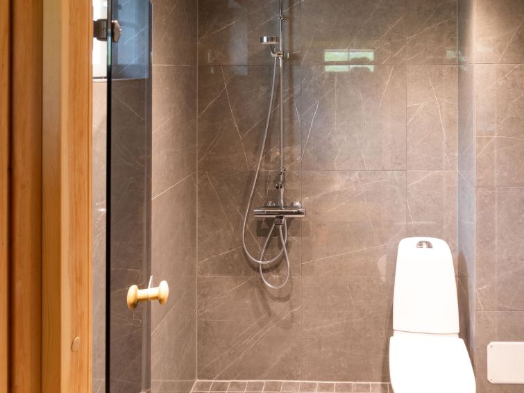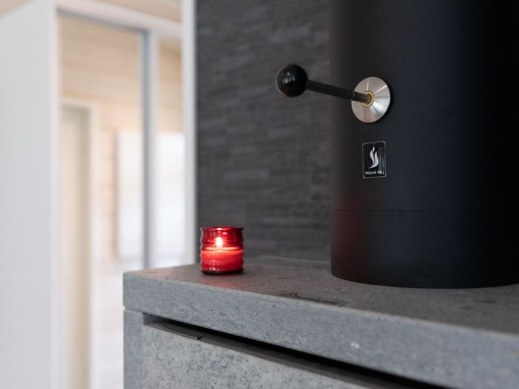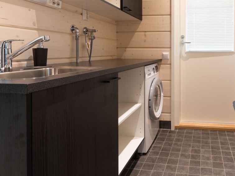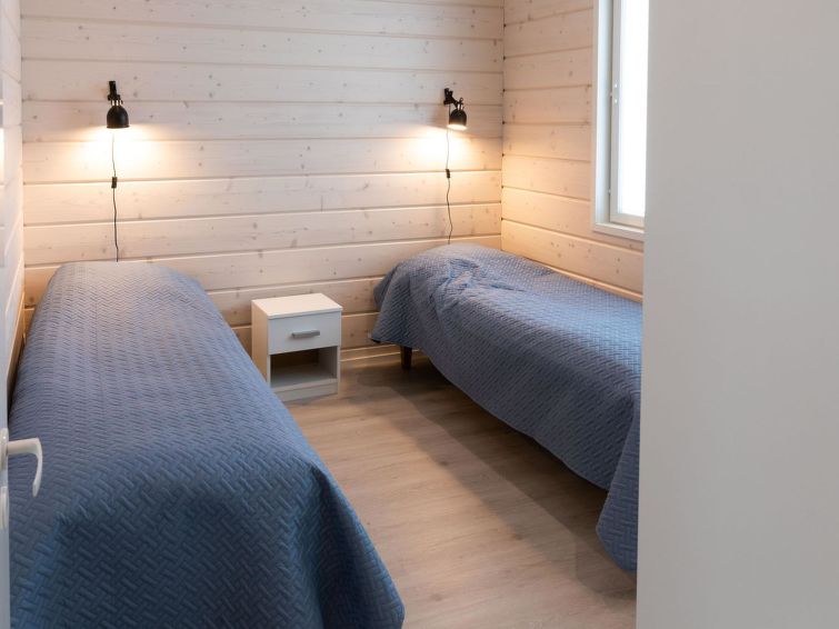 Wooden villa, built in 2022. Living room/kitchen, two bedrooms, both with two beds, sauna, washroom/WC, utility room, separate WC and covered terrace.