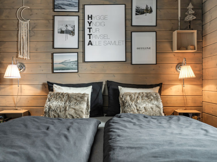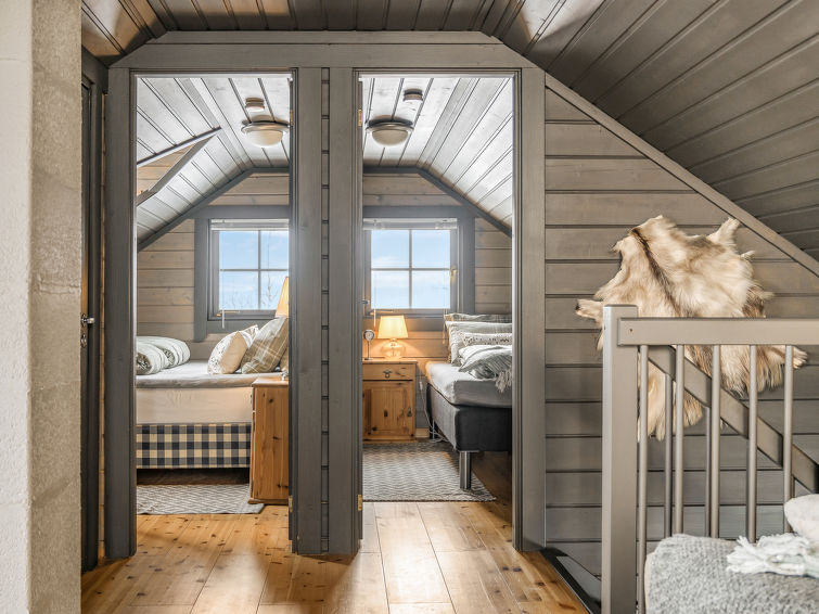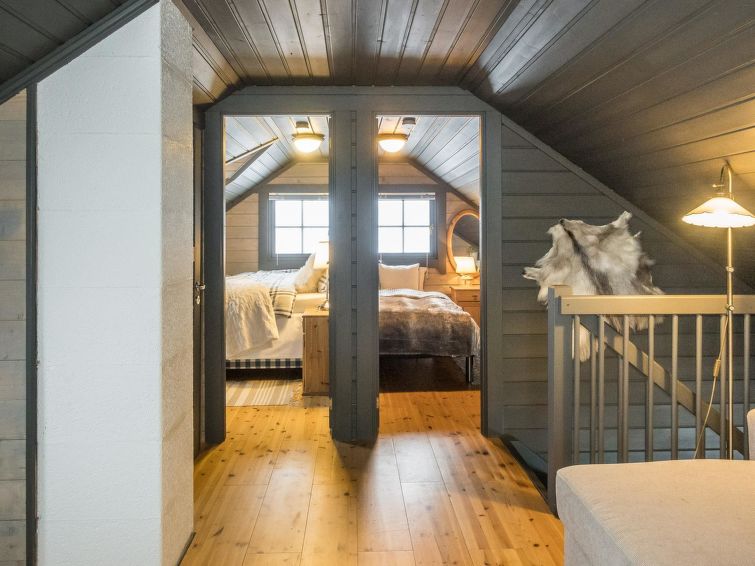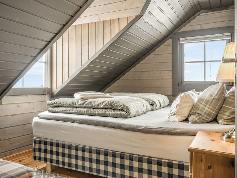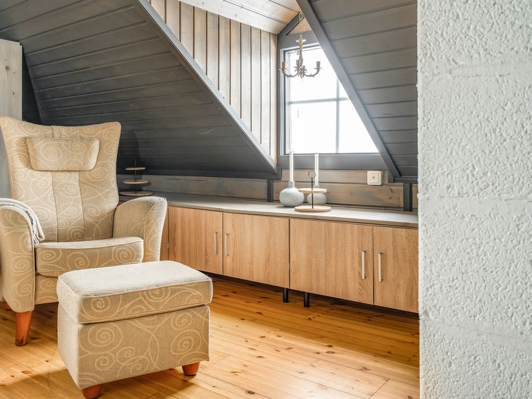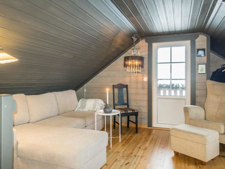 On the upper floor, bedroom with double bed (180 cm wide), bedroom with 2 separate beds (90 cm wide), bedroom has sloping ceilings, living area with sofa bed, balcony and WC. Satellite channels. 2 fire pits on the terraces.