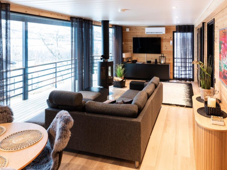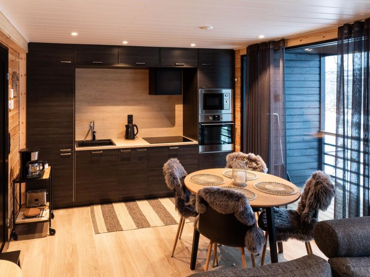 Saana's Lumous is a warm and well-equipped cabin. From the large windows, the wide fell landscape opens up to Ala-Kilpisjärvi, which you can admire in the warmth of the fireplace. The cabin's windows are heated, so they stay clear even in the harshest winter weather.