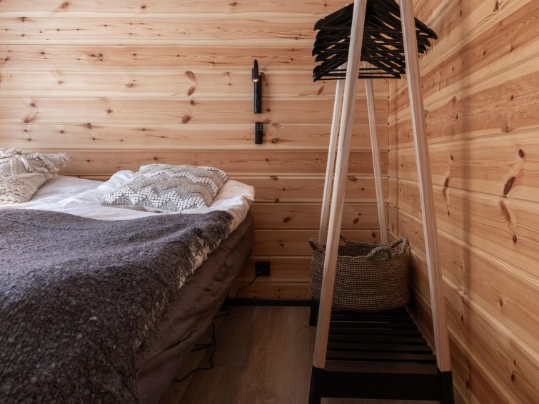 Wood-built cabin, built in 2022. Living room/kitchen, 2 separate motor beds in bedroom, bunk bed in another bedroom, sauna, washroom/WC, covered terrace and small storage.