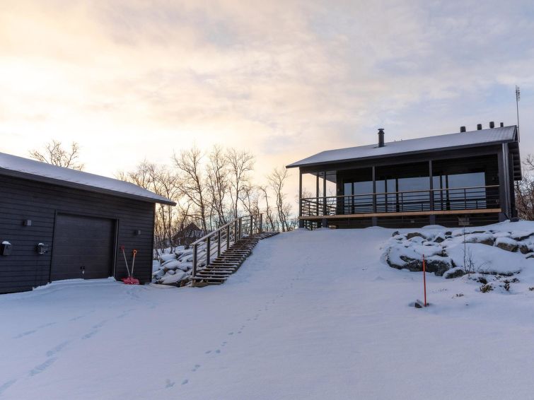 430 km to the northwest from Rovaniemi, 170 km from Enontekiö municipality center, 90 m to the Ala-Kilpisjärvi shoreline, no own beach, low-traffic road between the beach and the cabin.