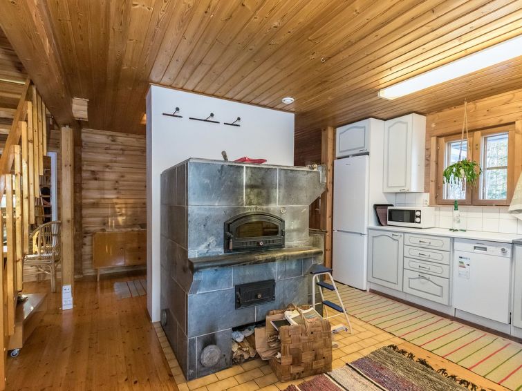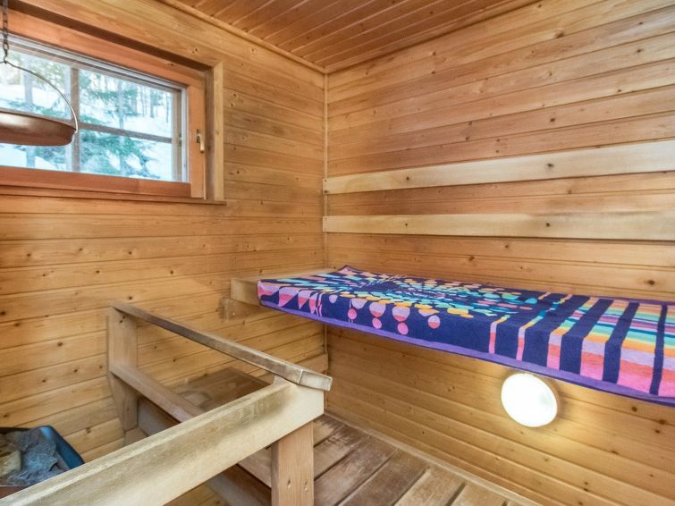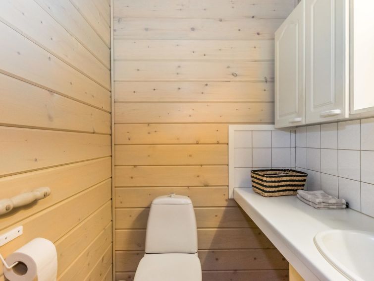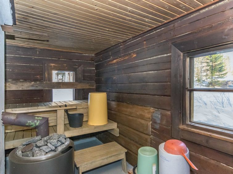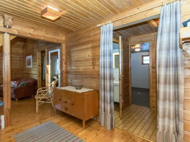 Log cabin 1990, renovated in 2018, kitchen, living room, bedroom (12.5 m²) with double bed, dressing room, washroom, sauna (electric sauna stove), WC, lobby and covered porch.