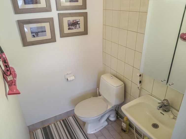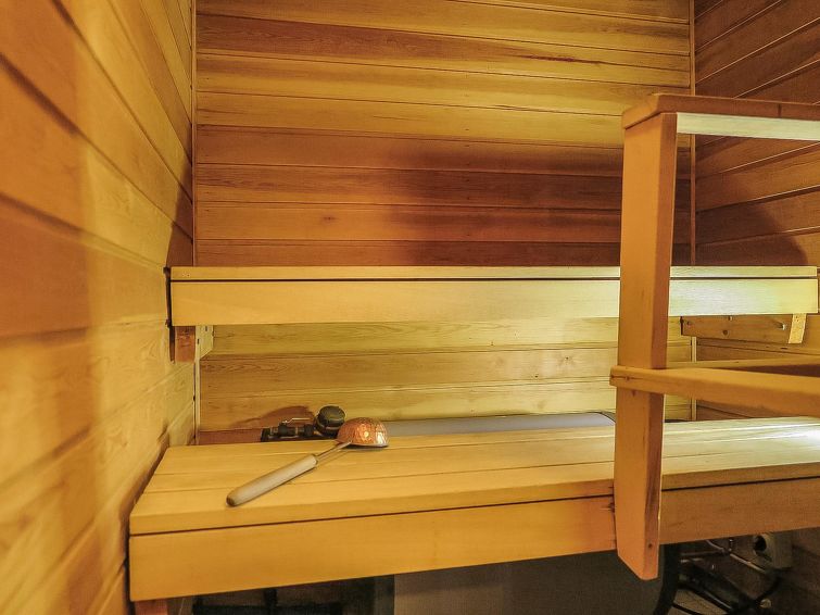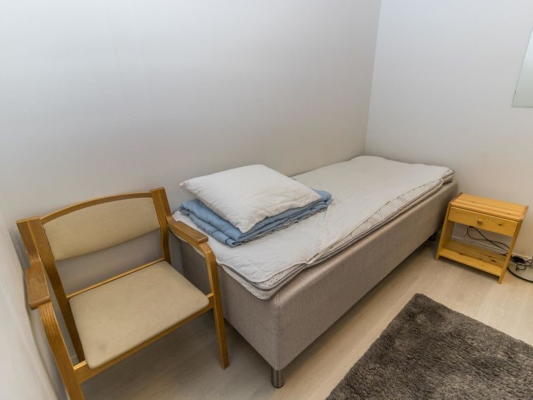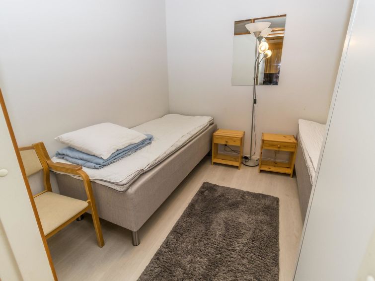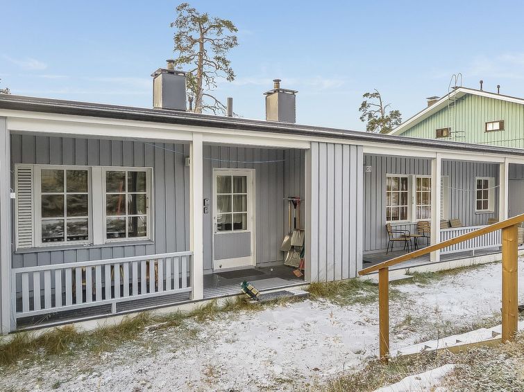Apartment in wooden rowhouse (terrace house) block 1979, renovated 2014, living room convertible sofa/bed, cooking corner, bedroom with 2 beds, sauna (electric stove), washroom, WC, hall, storage. Apartment equipment also includes wireless internet connection (WLAN), smart TV and karaoke equipment.