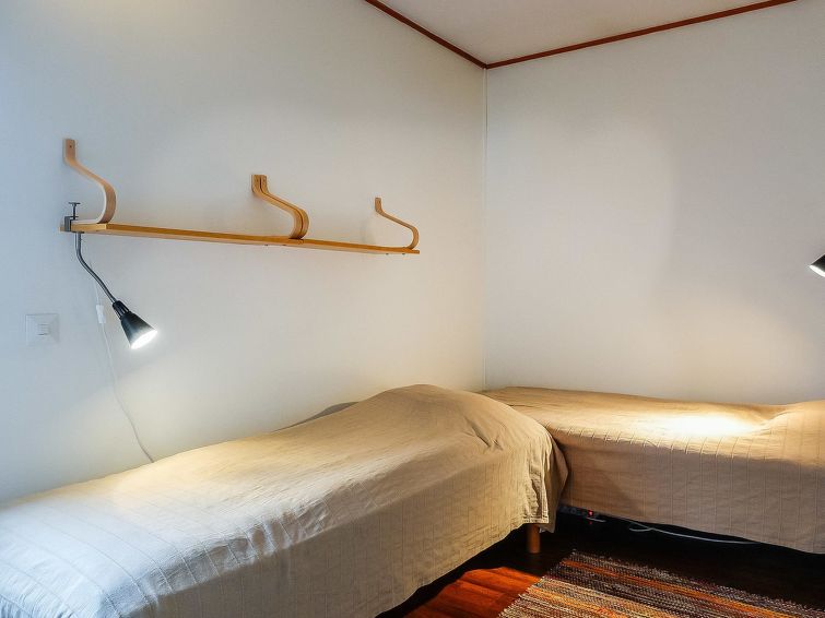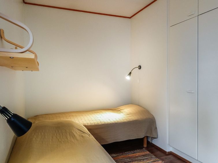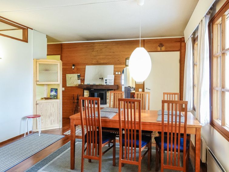 Wooden gable apartment in a row house built in 1979. Living room with sofa bed, kitchenette, 2 bedroom, both with 2 beds, another bedroom is windowless, sauna, washroom and covered terrace. There is a wireless internet connection (4G) in the apartment.