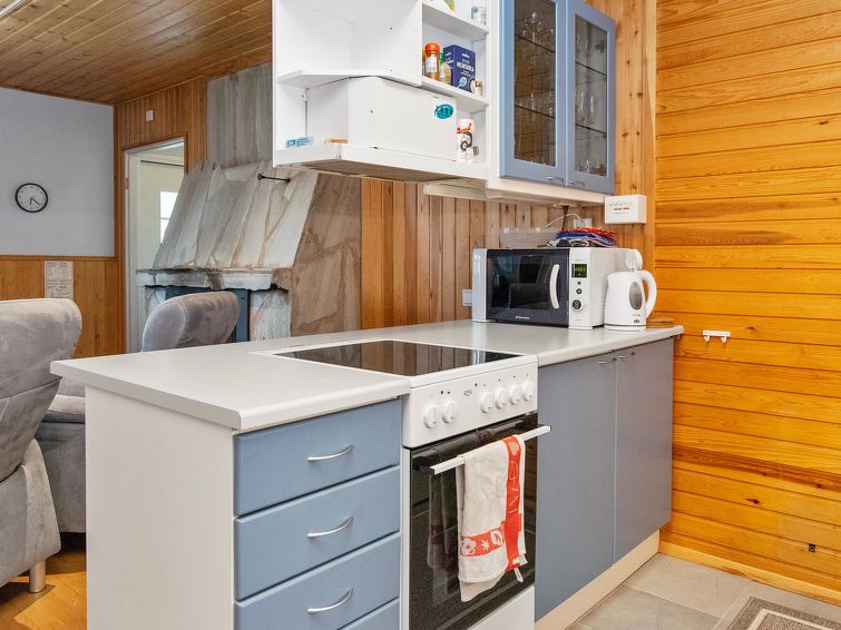 The kitchenette offers the opportunity for dining and relaxed get-togethers. The fireplace in the cottage provides warmth and cosiness.