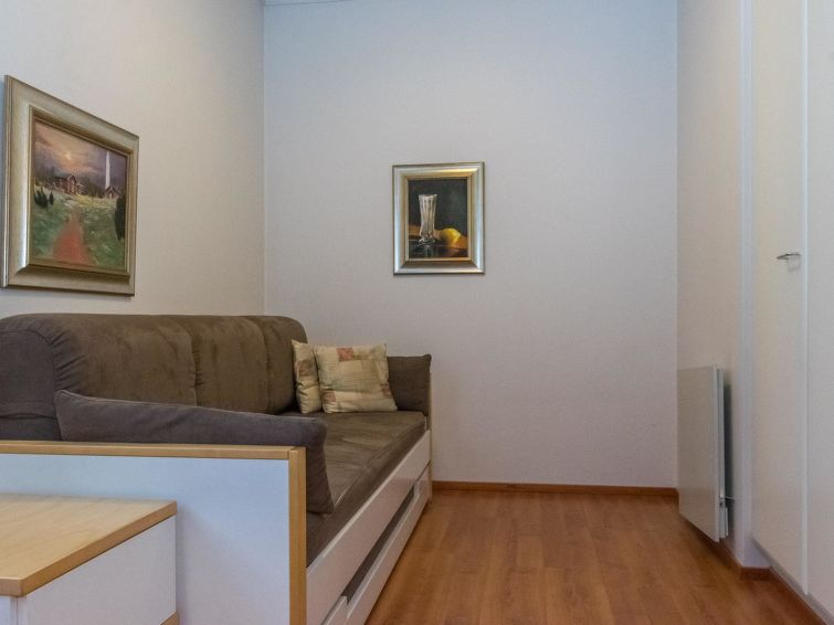 The apartment's kitchenette has its own corner, with all the necessary utensils and equipment for cooking. The fireplace in the living room creates a cosy atmosphere for socialising. The apartment has its own terrace.