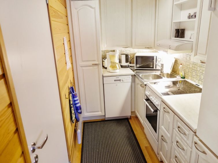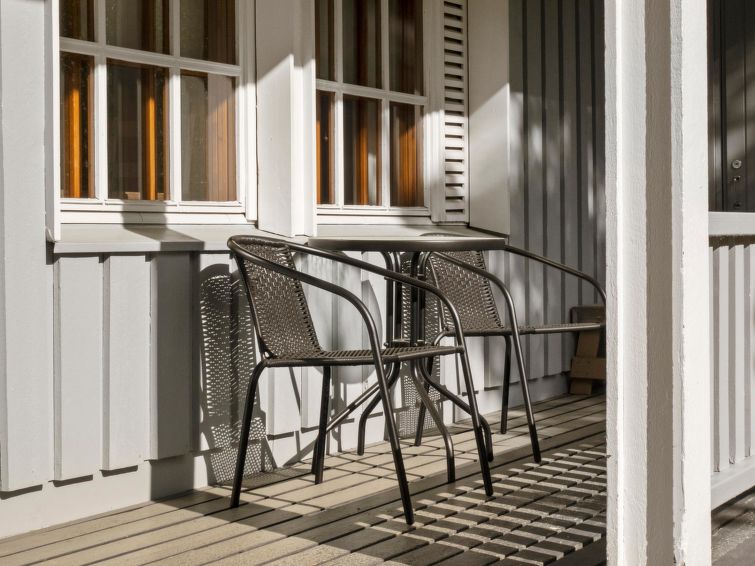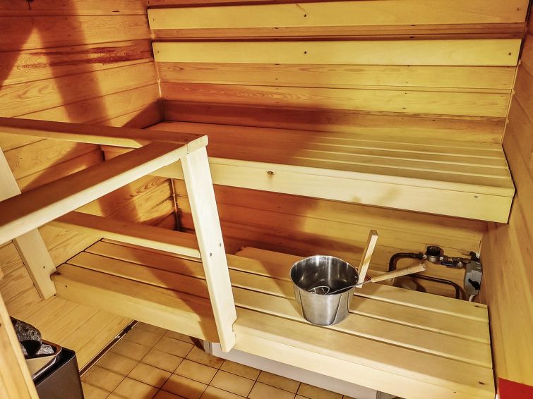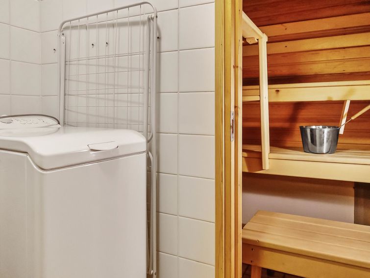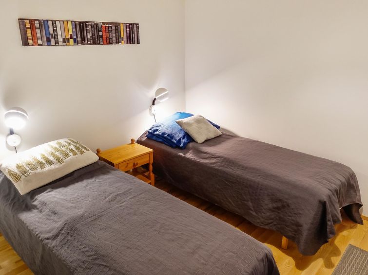 Living room with sofa bed, kitchenette, bedroom with 2 beds, another bedroom with bunk bed, sauna, washroom, separate WC and covered terrace. There is a wireless internet connection (4G) in the apartment.