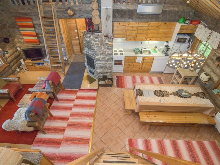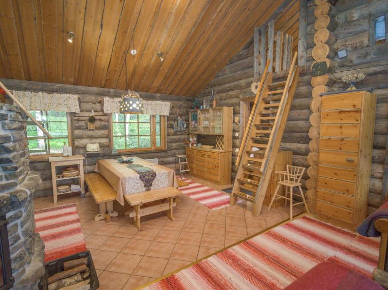 Inside the cabin, a comfortable living room/kitchen is combined with a relaxing electric sauna. Additional information: The nearest store is K-market Rukan Valley (600 m), but it may not be open year-round (please check the opening hours). Wi-Fi = 4G/200M.