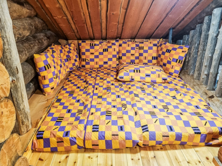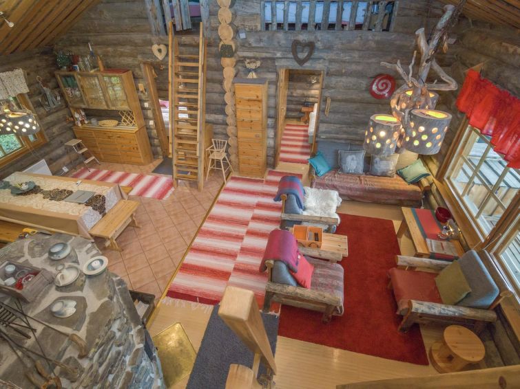 Atmospheric kelo-log cabin built in 2000, located in Ruka's Saarua-aho, a popular kelo-log cabin area. The cabin has two spacious bedrooms, with two comfortable beds in each. In addition, there are four beds in total on two lofts and an additional box mattress if needed.