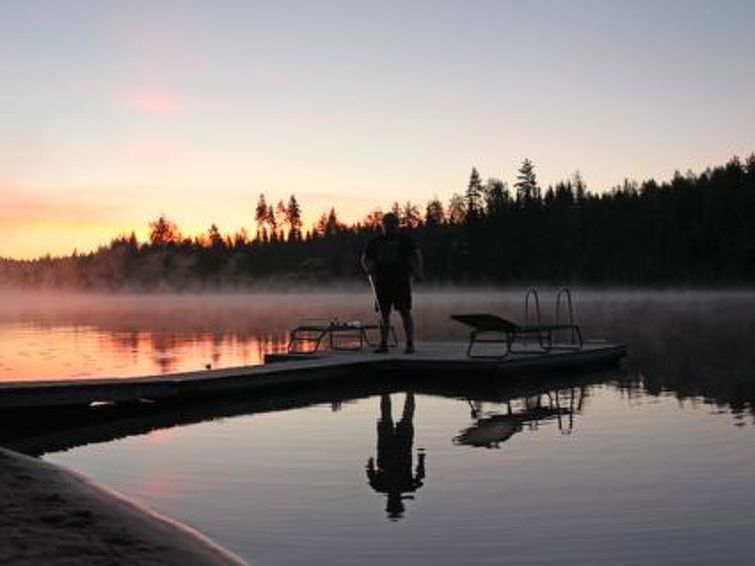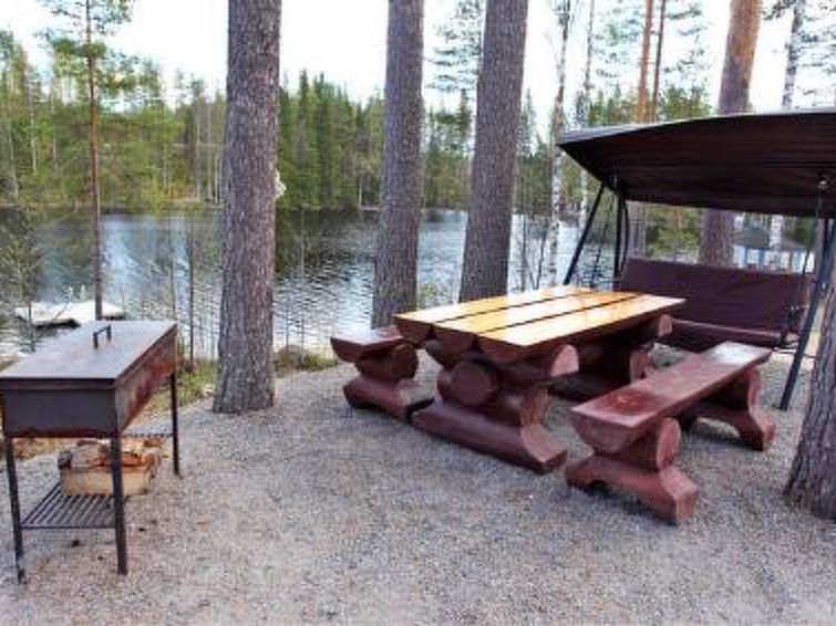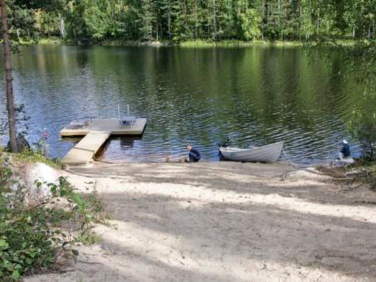 Pet allowed at extra price (pet fee for one pet) max 4 pets for reservation. Gentle slope from cottage to shore. Shore has jetty and a roofed shelter on a small hill with a table and seating, as well as a wood-fired barbecue grill. Swimming shore rapidly deepens.