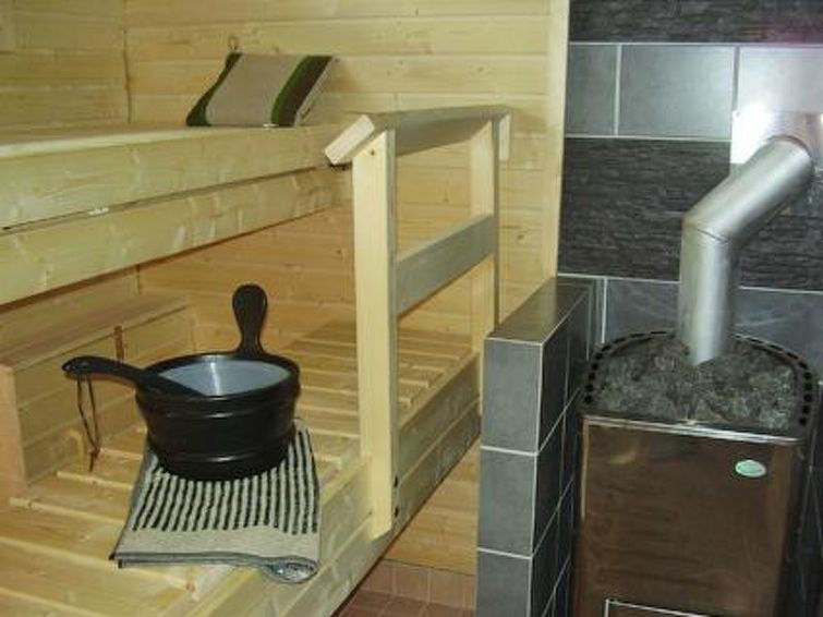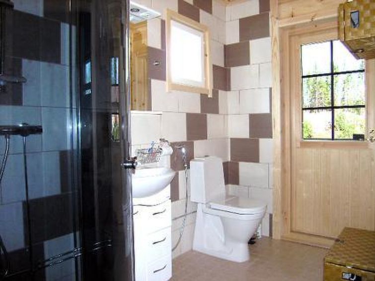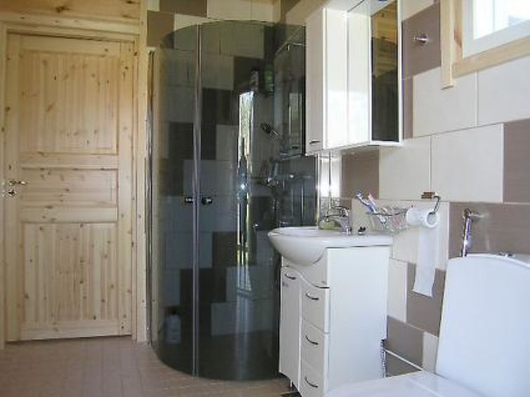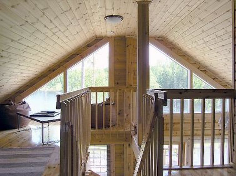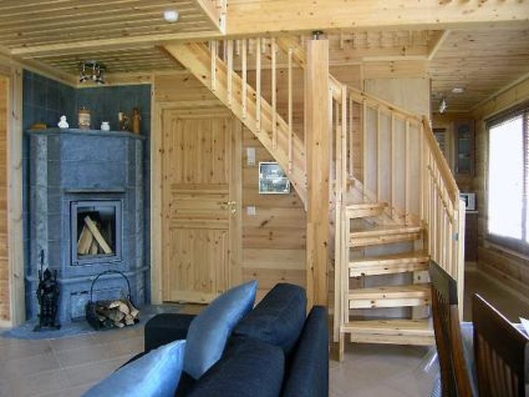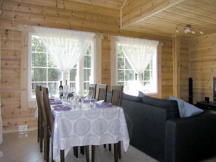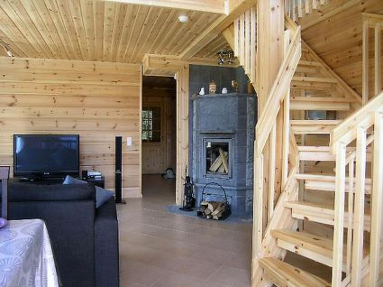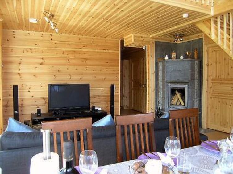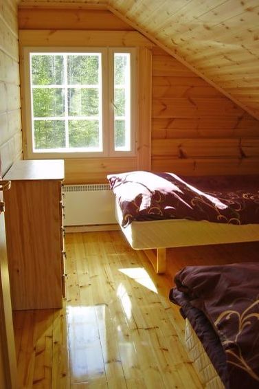 Laminated log house 2010, downstairs bedroom with double bed and bedroom with 2 single beds, living room extra double bed, kitchen, sauna, shower room, hall, spacious porch on two sides of house. Upstairs 2 bedrooms 2 beds in each, separate WC and lounge. SAT TV.