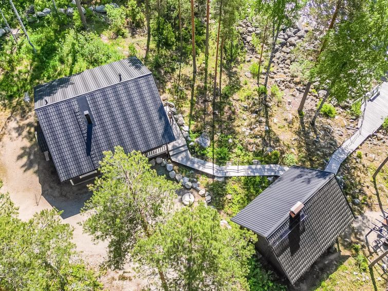 Saimaanhelmi is a well-equipped, stylishly decorated rental cabin that offers a perfect vacation in a scenic location. The plot of the cabin has plenty of large stones that you can admire while moving along the wooden footbridges. At the same time, you can let lake Saimaa's beautiful lake scenery enchant you during your vacation, here everyday worries and hurries are gone! After the soft steam in the lakeside sauna, you can prepare delicious meals in the barbecue area under the pergola, which has a smoker, fireplace, and frying pan. Saimaanhelmi is the perfect choice for an unforgettable vacation in the peace of nature.