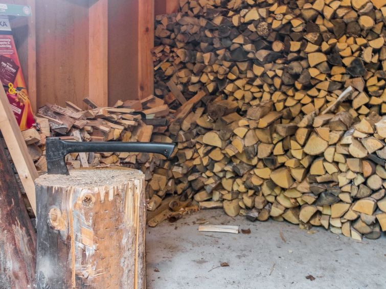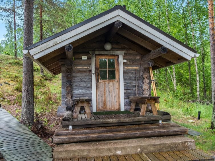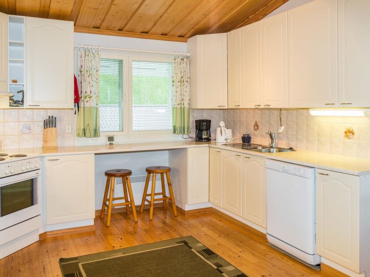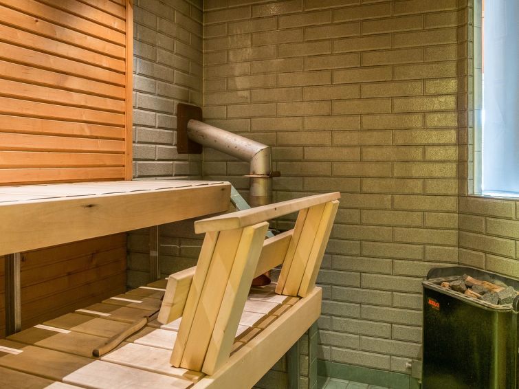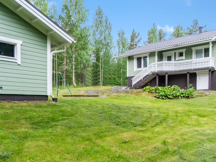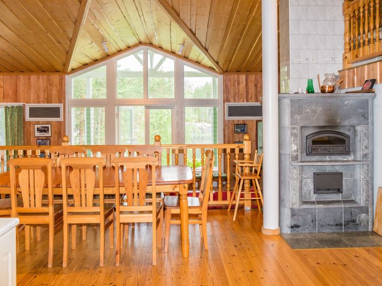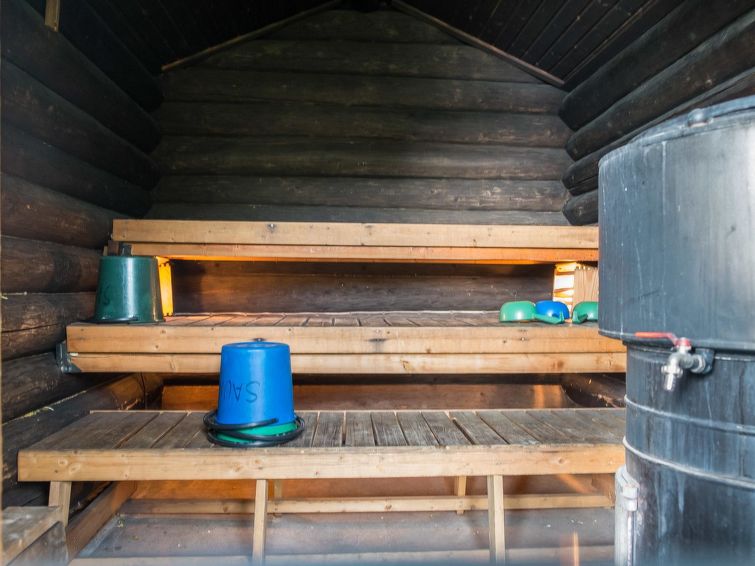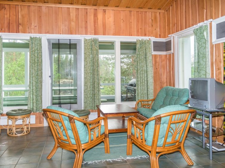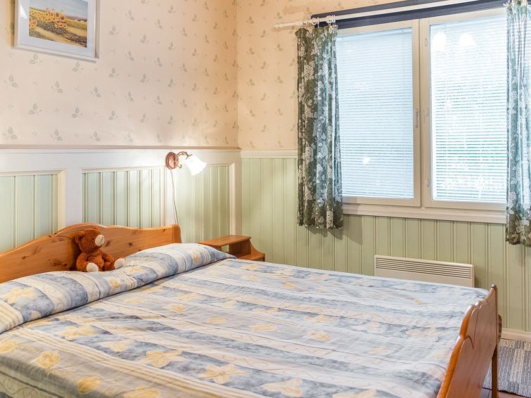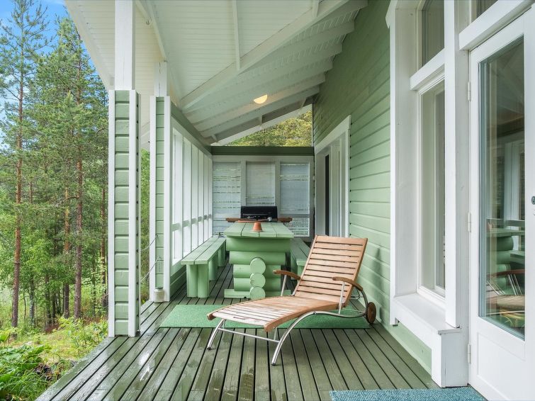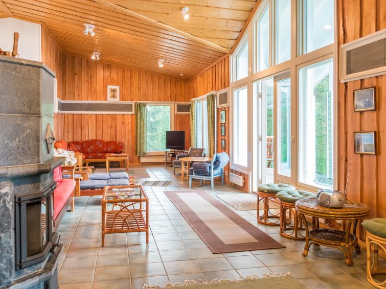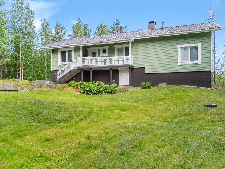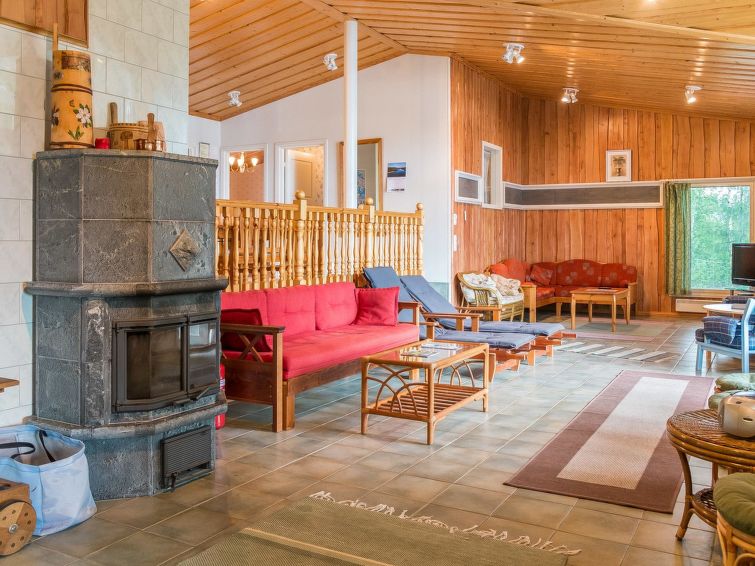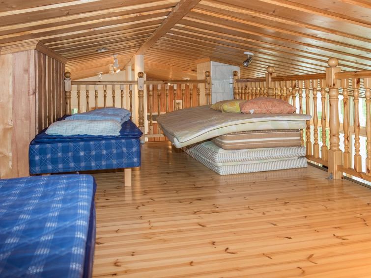 Wooden villa 2003, living room, kitchen, 2 bedrooms each with double bed, 1 bedroom with 2 beds, sleeping loft with 2 mattresses, washroom, sauna (wood-fired stove), partly glazed terrace (25m²).