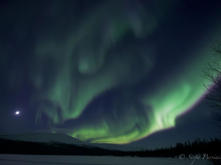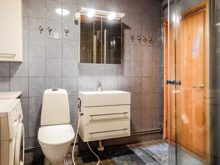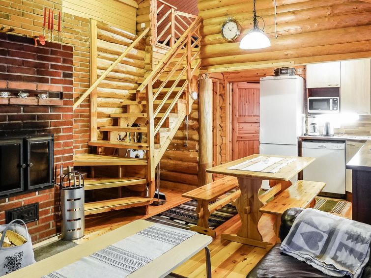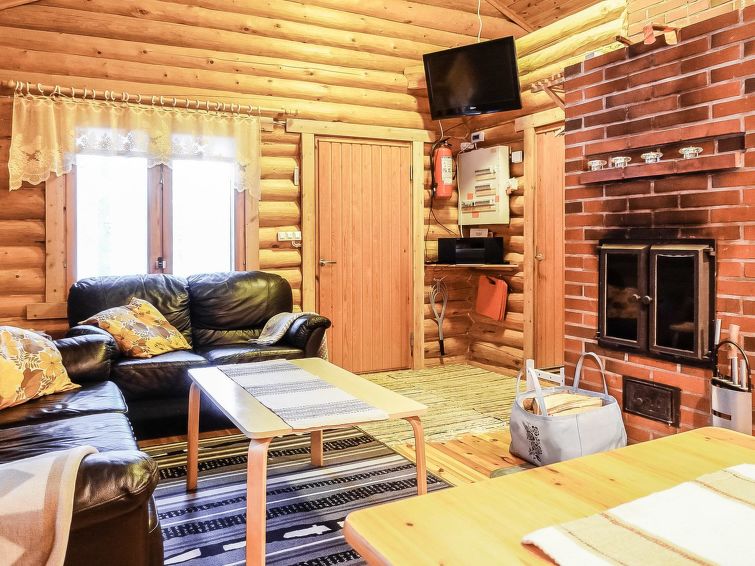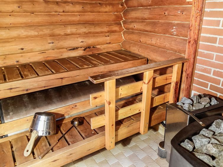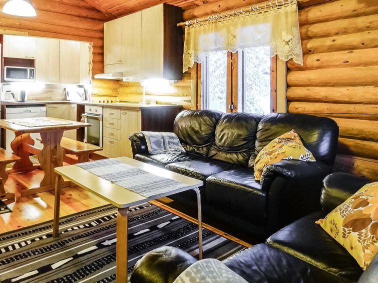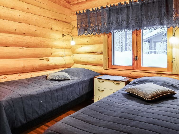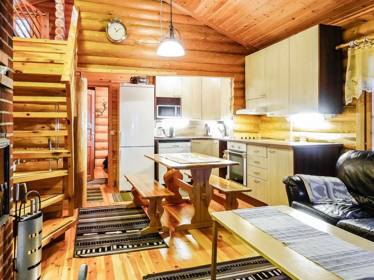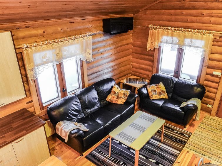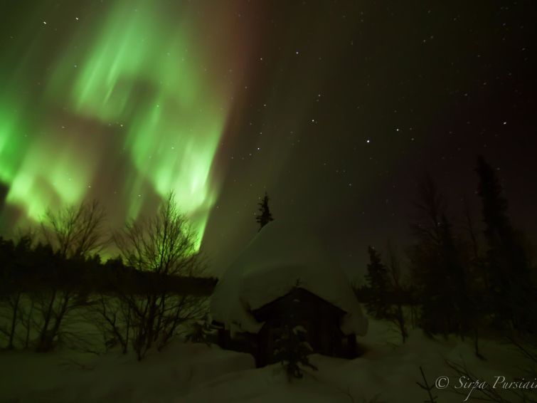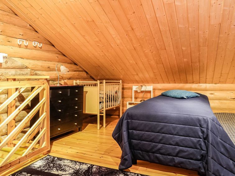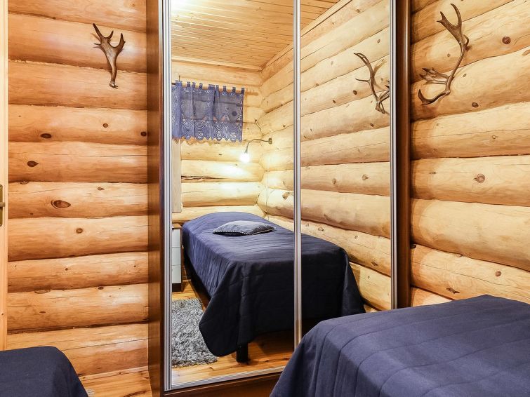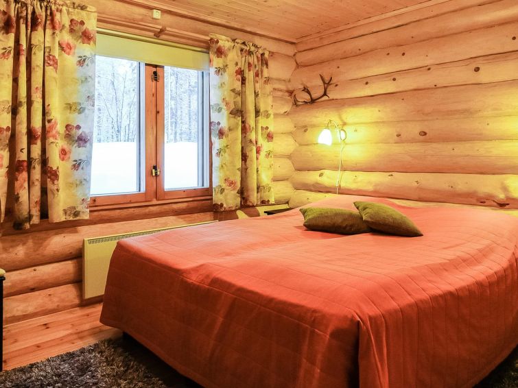 250 km north of Rovaniemi, L.Saivojärvi 100 m (length 1 km, width 200 m), shore shared with owner’s other cottage, shallow, soft mud bottom, jetty, shore unsuitable for children, own boat. Log building 1991, renovated and extended 2012, living room/kitchen, 2 bedrooms with 2 beds in each. Upstairs (no door) 1 bed, sauna (electric and wood burning stove), washroom, open porch. Shore has grill tepee shared with other cottage. Completely renovated cottage at PALLASTUNTURI, with fells and national park on opposite shore of lake 300 metres away! Pallas and Raattaman Reitit -ski trail network 300 m. Splendid views of fells from cottage. Lake shore is 100 metres away over the road and past the owner’s other cottage. PALLASTUNTURI ski resort 40 km, Tunturihotelli Vuontispirtti (hotel) 3 km, Raattama village 13 km. Neighbouring cottage is no. 9869.