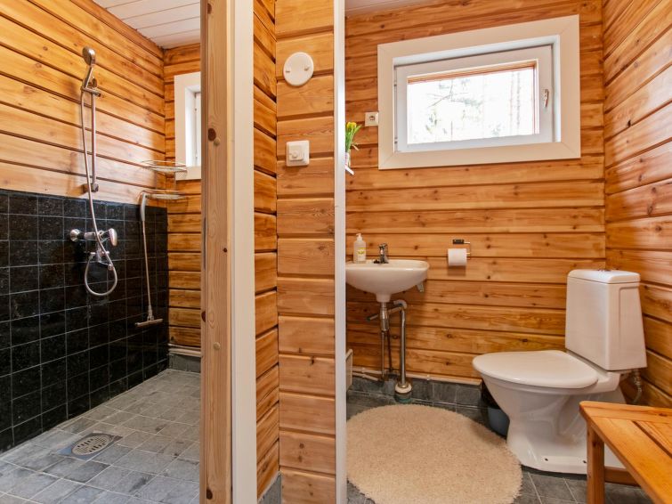 70 km east of Kuopio. Lake Vihtajärvi 10 m (length 3,5 km, breadth 1 km), deep water, gravel bottom. Pier, own boat. Log cabin 1983, renovated 2002 and completely renovated in 2022, kitchen/living room with 1 extra bed, 2 bedrooms with 2 beds in each, sauna, dressing room, shower room, open veranda.