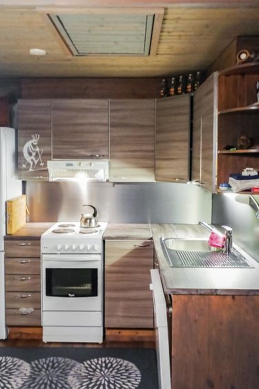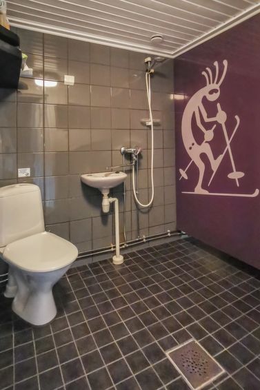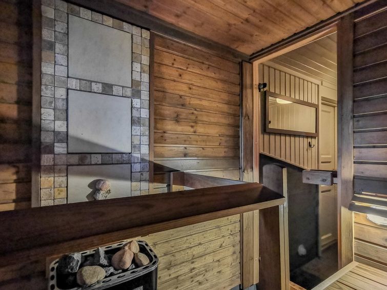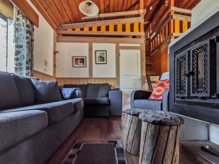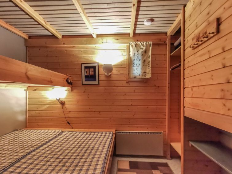 27 km north of Kuusamo, Vuosseli (Eastern Ruka) 2.9 km, Ruka village (Western Ruka, Central Square) 7 km, Lake Vuosselijärvi 600 m, rock/mud bottom, boat in shared use. Apartment in plank-built semi-detached house, built in 2001, bedrooms 1-2: bunk bed (lower bed double bed + upper bed 80cm), loft (15 m², sloping ceilings, 2 parts): 4 matresses, combined kitchen/living room, electric sauna. Apartment in semi-detached house in Vuosseli, 3 km to slopes.