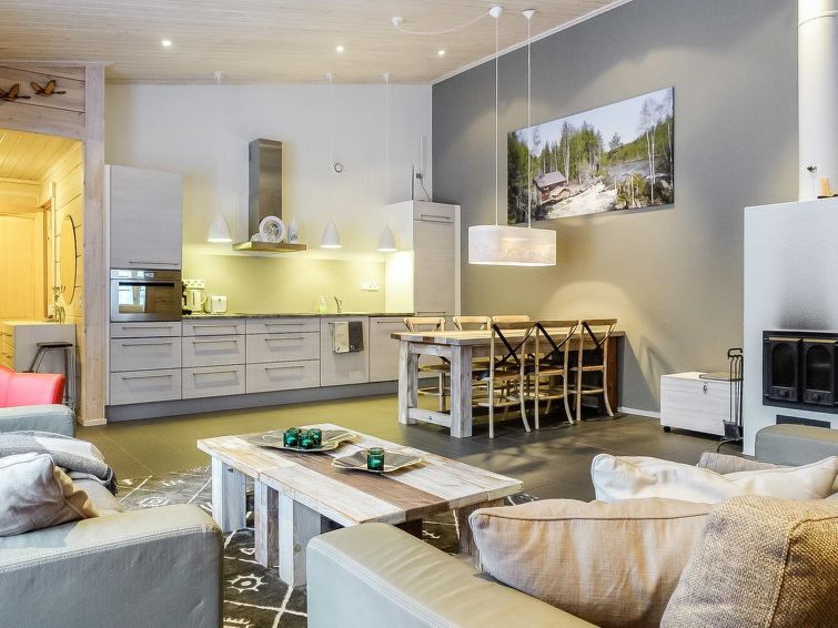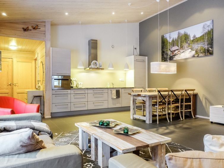 High-class apartment in Pan Village Oulanka area, area is illuminated and asphalted. One car heating plug (control panel in the apartment). In area several holiday apartments. Sallatunturi tourist services 3 km, Salla Reindeer Park 500 m (reindeer safaris, husky safaris, excursions).