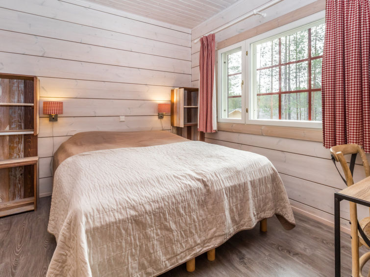 Log-built apartment, built in 2011, the house has 4 apartments in total. Living room/kitchen, 3 bedrooms with 2 beds in each, washroom, sauna (electric sauna stove), utility room, 2 WCs (one has shower), lobby, open porch.