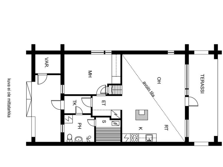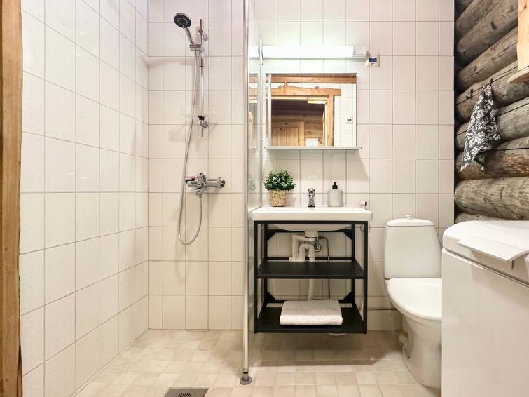Living room/kitchen with sofa bed, bedroom with double bed, sauna, washroom/WC, covered terrace and storage. Services of Sallatunturi tourist center are just over a kilometer away. The nearest slope is within 1.3 km, Salla Sports Hall is 1.5 km. Spa hotel 1.2 km.