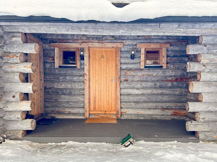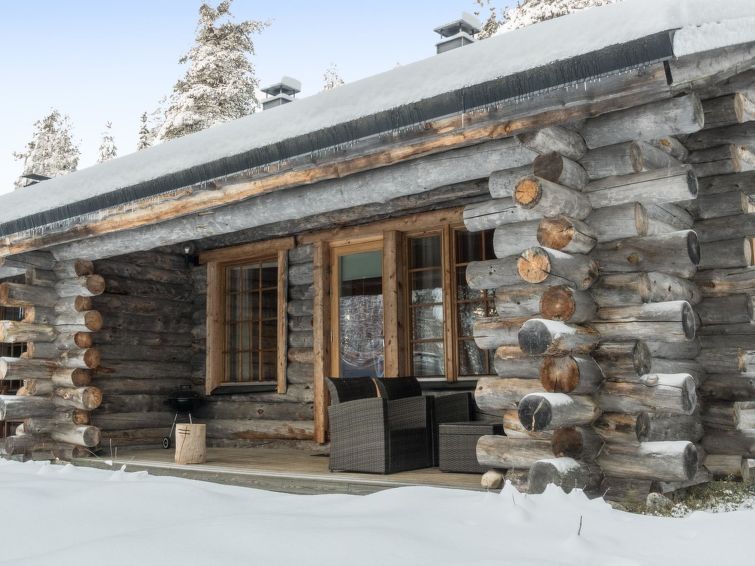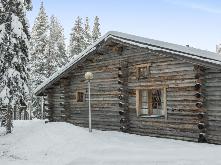 Kelo log-built gable apartment in a row house near the services of Sallatunturi tourist center. Spa and ski slopes just over a kilometer away.