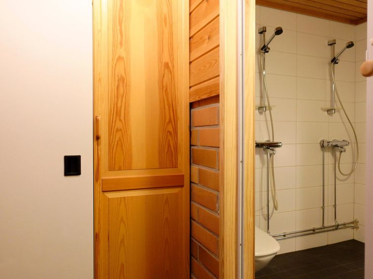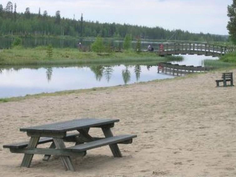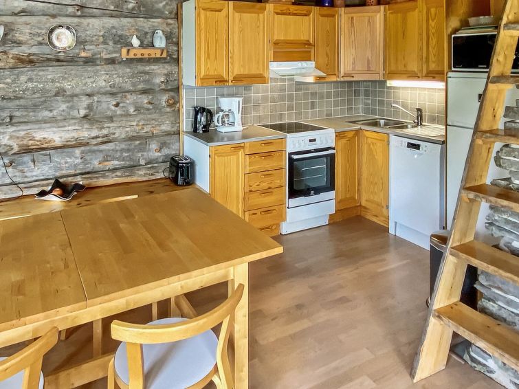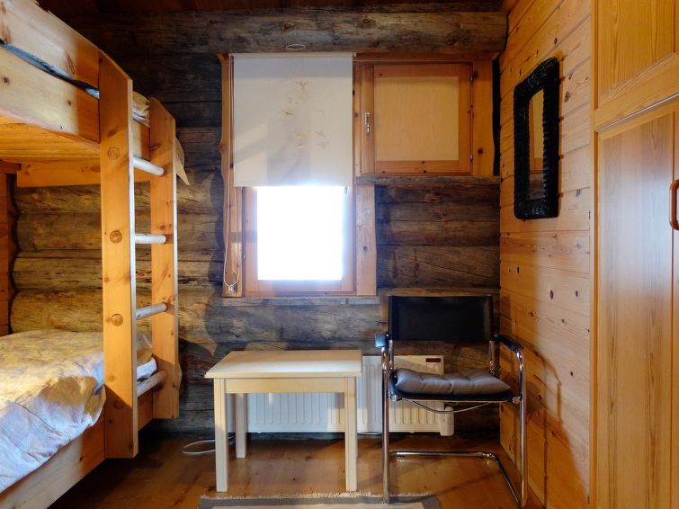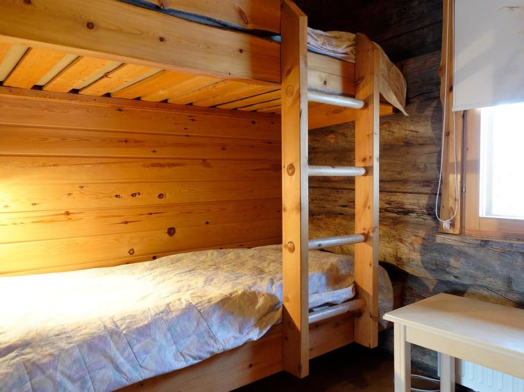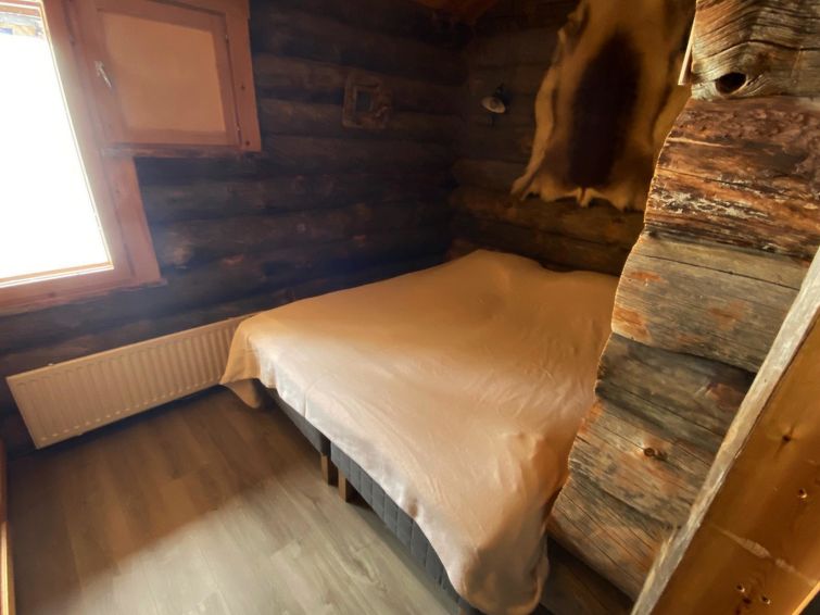 75 km east from Kemijärvi, location in Sallatunturi tourist center, Lake Keselmäjärvi 100 m (public beach, road between cottage and beach). Silverlog-detached house built in 1990, combined living room-kitchen: a sofa bed, bedroom: double bed (new matresses in 2022), bedroom: bunk bed, loft (20 square meters, steep stairs): 2 beds, sauna (electric stove), bathroom (2 showers and toilet), separate toilet, balcony. Sauna and bathroom renovated totally in 2013. A large storage (no heating), in which for example the possibility to maintenance of skis. Log cabin near Sallatunturi tourist services. Public beach 100 m with barbecue hut and site for a camp fire, spa 1.1 km. The closest ski slope (Kilparinne) 500 m, Sports hall Salla-halli 600 meters, services in Salla municipality 9 km.