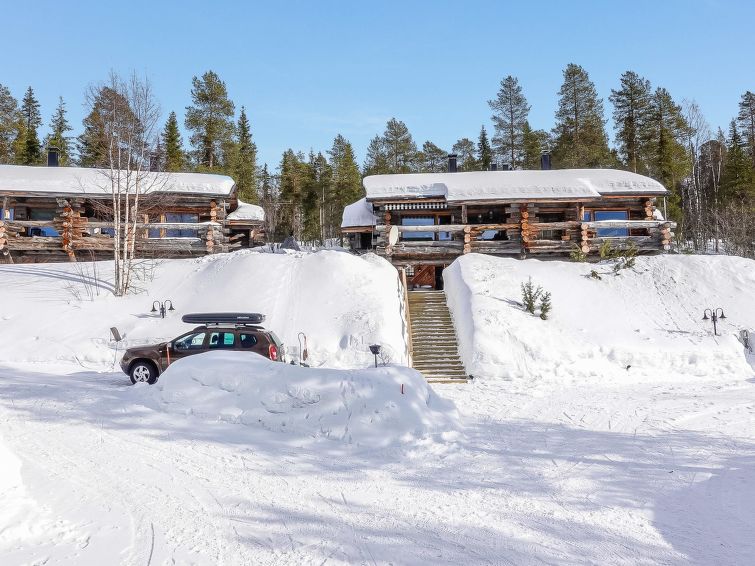 In addition, spacious storage (no heating) suitable for ski maintenance and bicycles storage. Kitchen renovated in 2020. Drying cabinet and sauna stove renovated in 2022. Sallanhelmi E 2 is kelo log apartment in the semi-detached house near the services of the Sallatunturi tourist center. Located on a hillside location, access from the parking area by stairs.