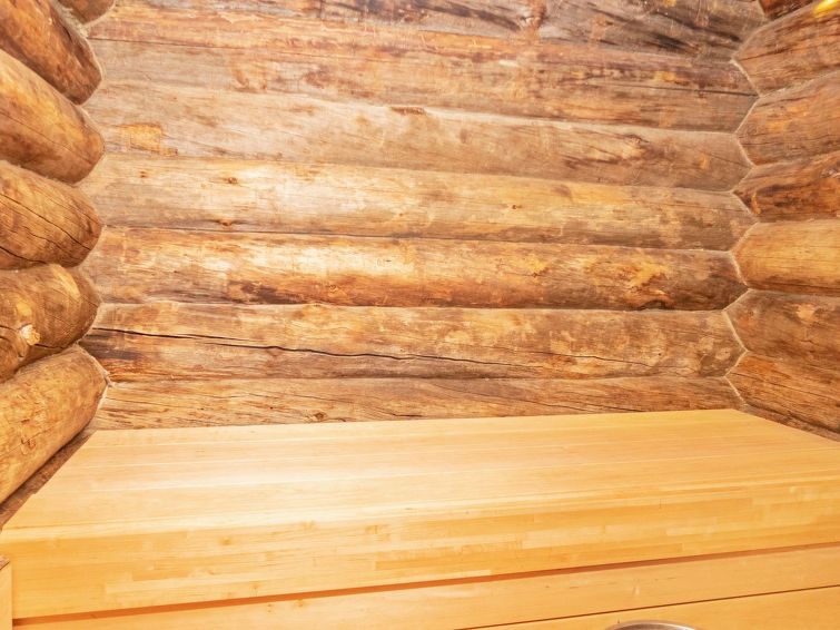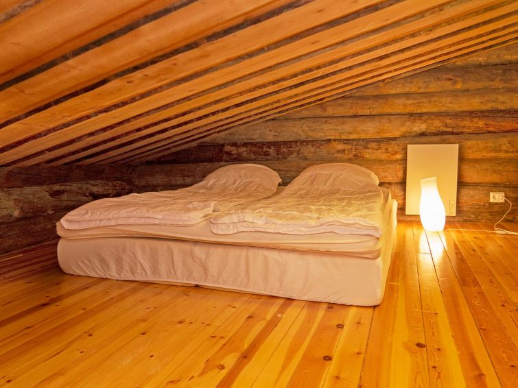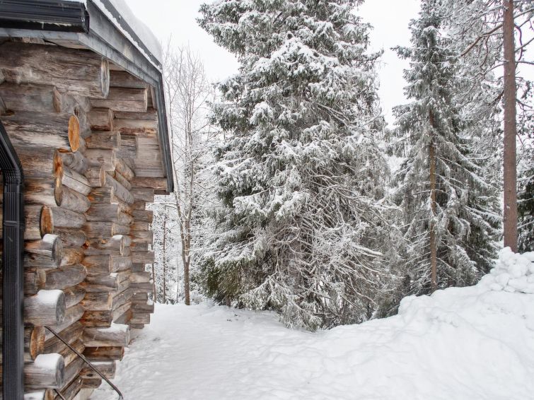 27 km to the north from Kuusamo, Ruka village (West-Ruka) 3,5 km, pond Salmilampi 100 m. Kelo log-built apartment, built in 1989, in semi-detached house, bedroom with double bed, loft (low room height): box spring for two, living room with sofa bed for two. Kitchen. Electric sauna.