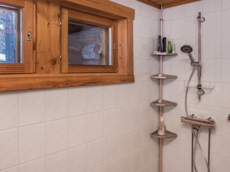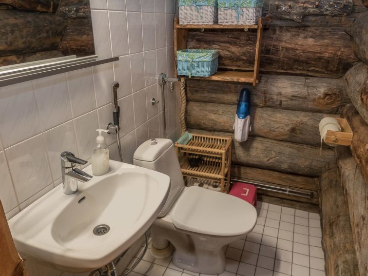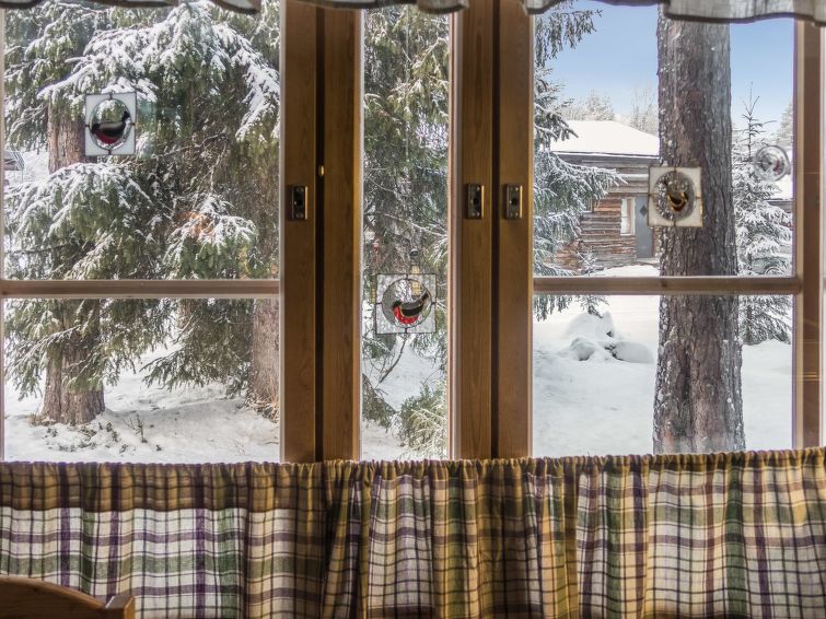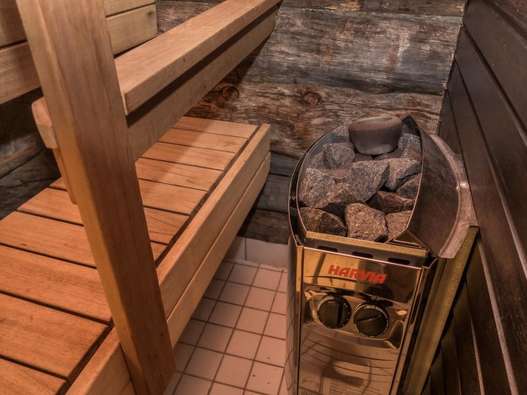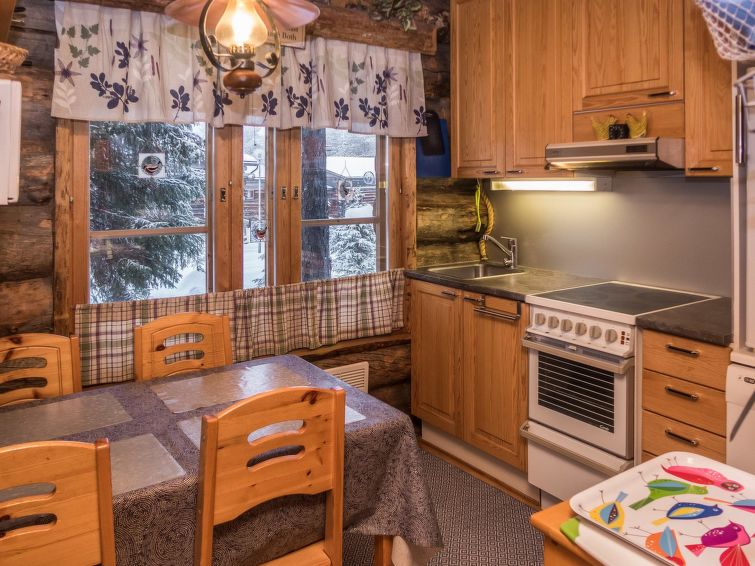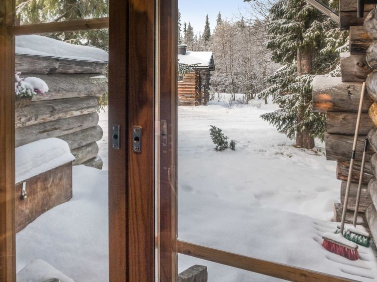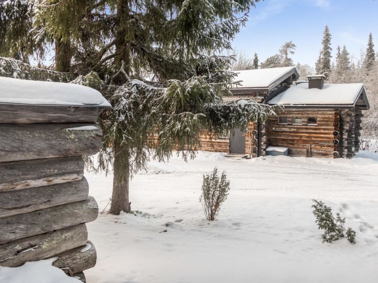 27 km north of Kuusamo, Ruka village (Western Ruka) 3.5 km, Salmilampi pond 500 m. Log-built apartment, built in 1989, bedroom: double bed (width 140 cm), loft (13 m², low room height): double bed and 2 mattresses + baby cot. Kitchen. Electric sauna. Apartment can be rented for maximum 4 adults; additionally 2 children are possible.