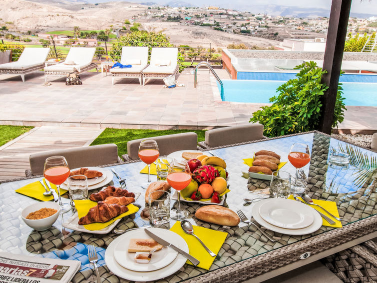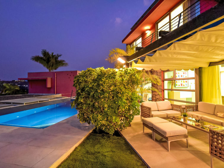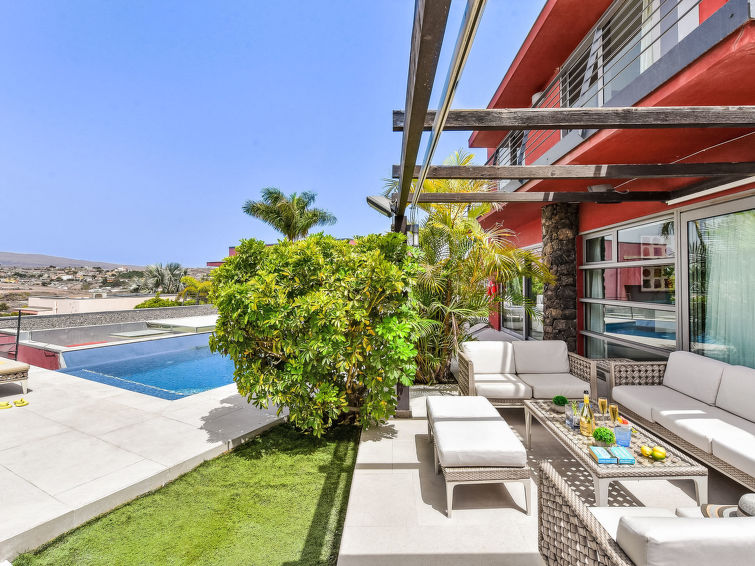 Stor, moderne villa "Salobre Villa 6". I området Maspalomas, i sentrum av Salobre Golf Resort, utenfor området Meloneras 7km, i en roligt, solrikt, høyt posisjon i et boligområde. Privat: hage (inngjerdet) med plen, svømmebasseng kantete (8 x 4 m, dybde 150- 150 cm dyp, Sesongåpent: 01.Jan. - 31.Des.). Grill, parkering på tomten, privat garasje, offentlig parkering på veien. Butikk, daglivarehandel 800 m, supermarked 2.5 km, restaurant 100 m, sandstrand 3 km. Golfbane 50 m. Eieren godtar ikke noen ungdomsgrupper. Vennligst merk: flyplass 25 km av hbrukt. Stille og rolig område. Stillhet og god oppførsel.