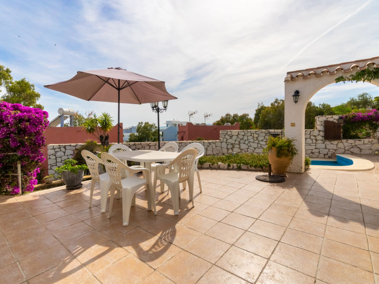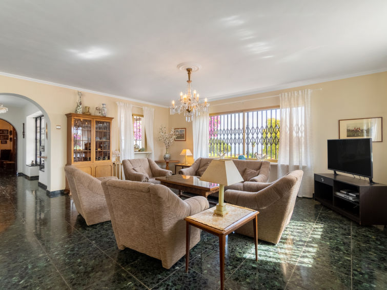 "Salto del monte", 4 rom hus. Passer for 6 voksne + 2 barn. Komfortabelt og vakkert møbler: stue/spisestue 50 m2 med, satelit-TV, flatskjerms TV, stereoanlegg og air-conditioning. Utgang til sitteplass i hagen. 1 dobblet rom 22 m2 med, 1 dobbeltseng (180 cm, lengde 190 cm). 1 rom med 2 senger (90 cm lengde 200 cm). 1 rom med, 1 dobbel sovesoffa (1 x 140 cm, lengde 190 cm), 1 dobbeltseng (180 cm, lengde 200 cm). Kjøkken (stekeovn, oppvaskmaskin, mikrobølgeovn, frys, elektrisk kaffemaskin). 2 dusjer/WC, sep. WC, massasjedusj. Oppvarming, airconditioning. Stor sitteplass i hagen. Terrassemøbler, grill, liggestoler. Panoramautsikt av havet og området. Fasiliteter: vaskemaskin. Internett (trådløs LAN [WLAN]). VFT/MA/03830