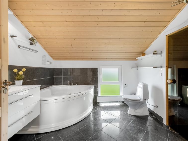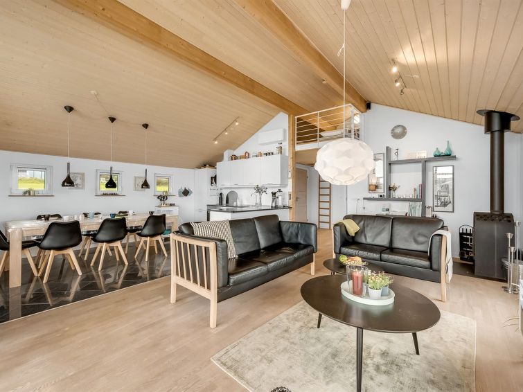 "Samuil" - 300m to the inlet in The Liim Fiord", 3 rom hus 120 m2. Passer for 8 voksne + 1 barn. Stue med, TV, CD-spiller, stereoanlegg og DVD. 1 rom med, 1 dobbeltseng. 1 rom med 2 senger. 1 rom med, 1 dobbeltseng. Kjøkken (stekeovn, oppvaskmaskin, 4 keramiske kokeplater, mikrobølgeovn, frys). Dusj/WC, boblebad. øverste etasje: åpen galleri med 2 senger. Av viken. Fasiliteter: høy barnestol barneseng (ekstra). Internett (trådløs LAN [WLAN]). Vennligst merk: røykfri bolig.