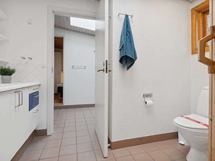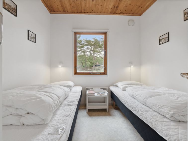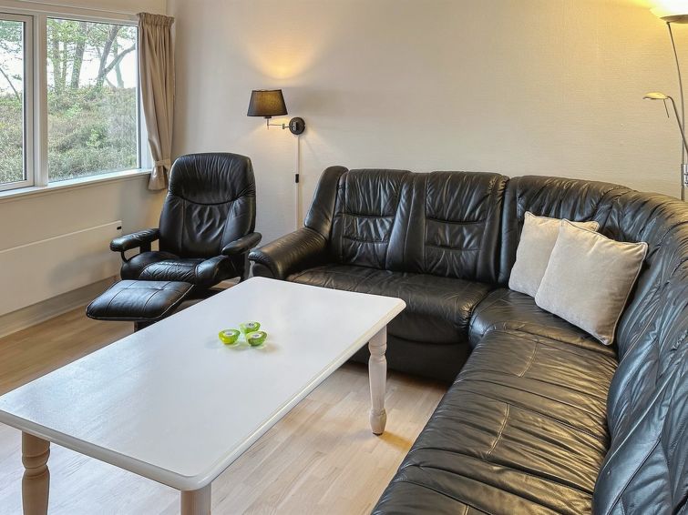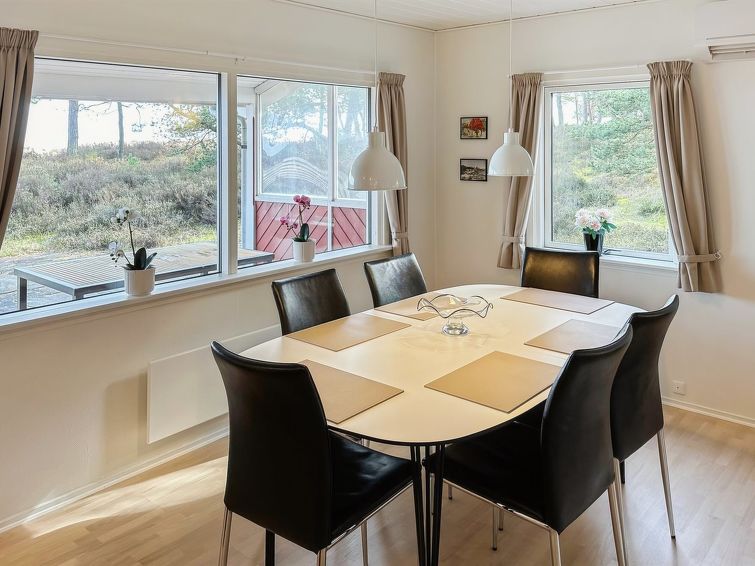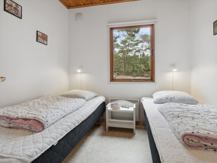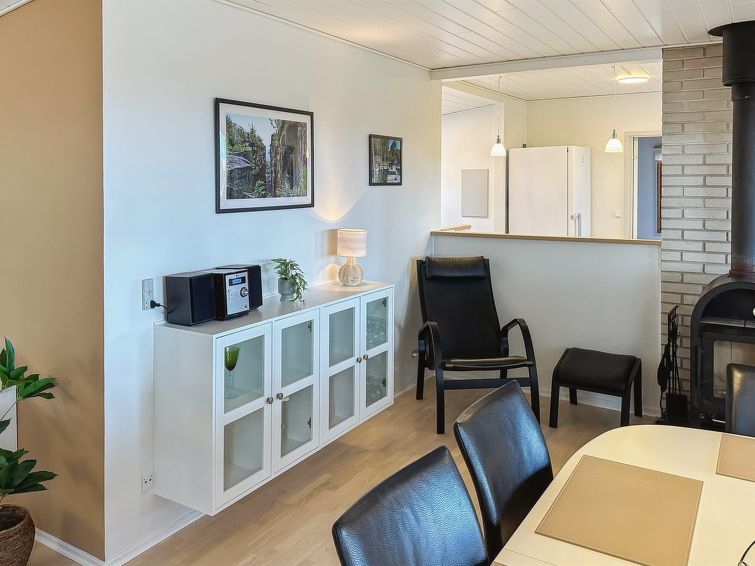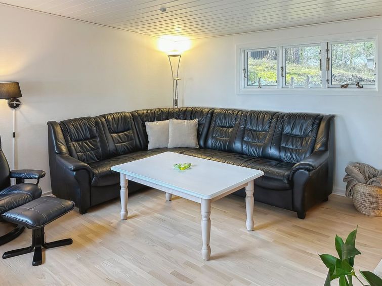 Enmannsbolig, bygget i 1976. 150 m fra sjøen. Privat: uberørt tomt 7'720 m2. Terrasse (40 m2), grill. I huset: vaskemaskin. Parkering ved hbrukt. Bilporten. Daglivarehandel 3 km. Golfbane 4 km. Eieren godtar ikke noen ungdomsgrupper.